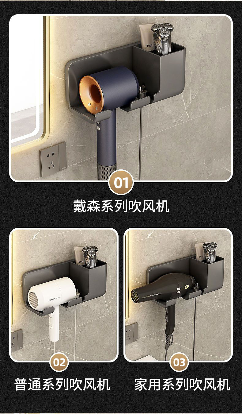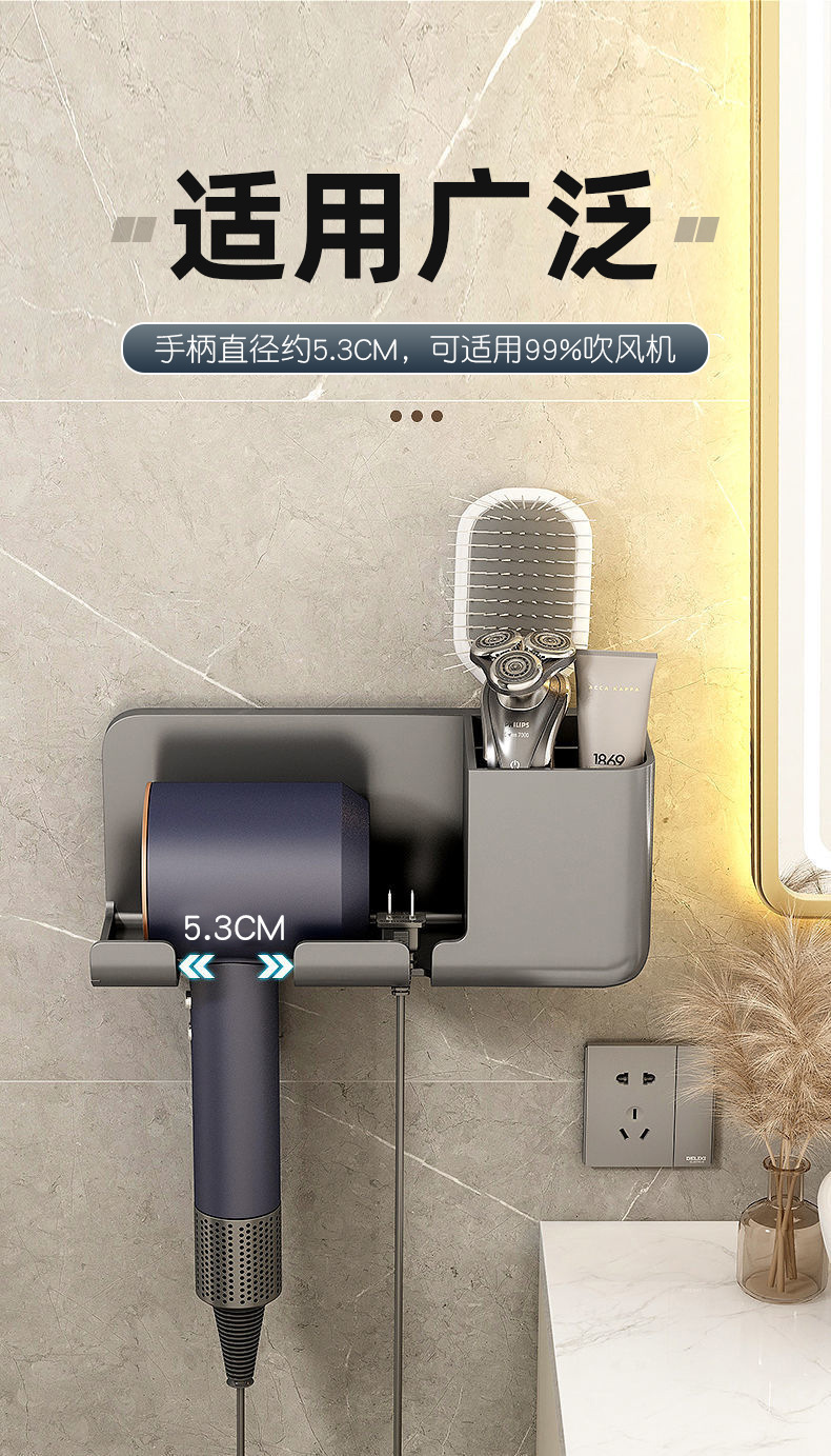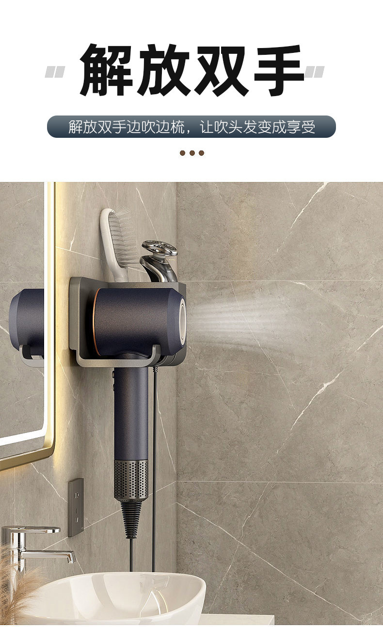 Hair Dryer Holder, No-Drill Wall Mount for Bathroom