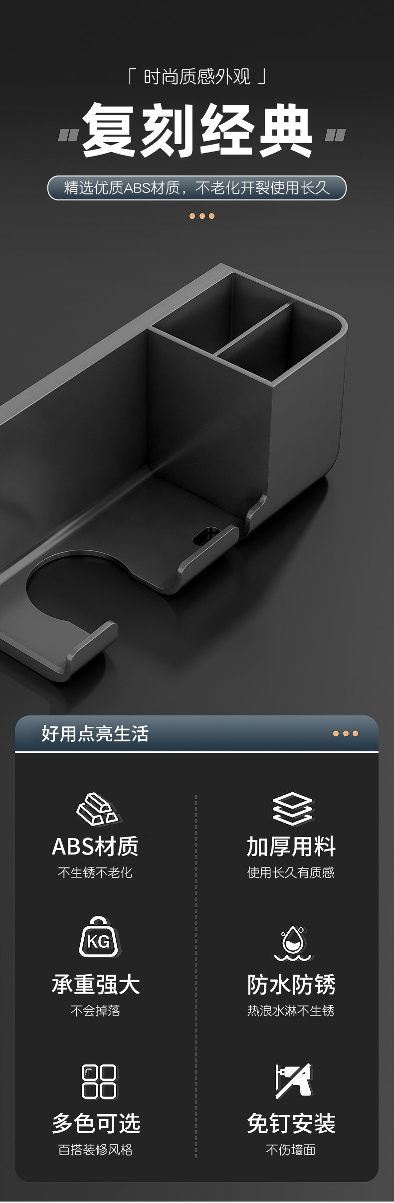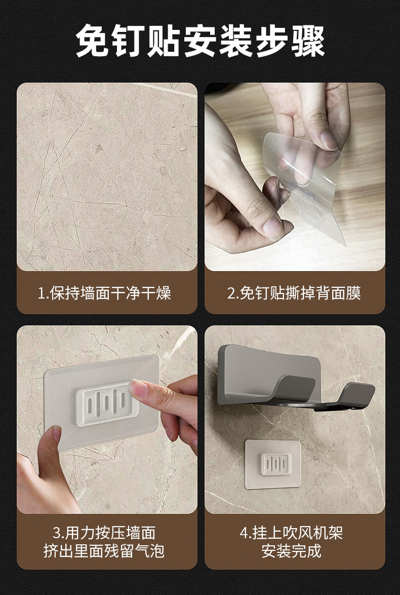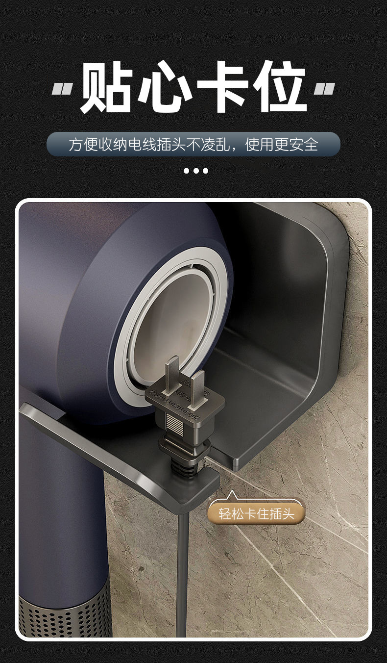 Hair Dryer Holder, No-Drill Wall Mount for Bathroom