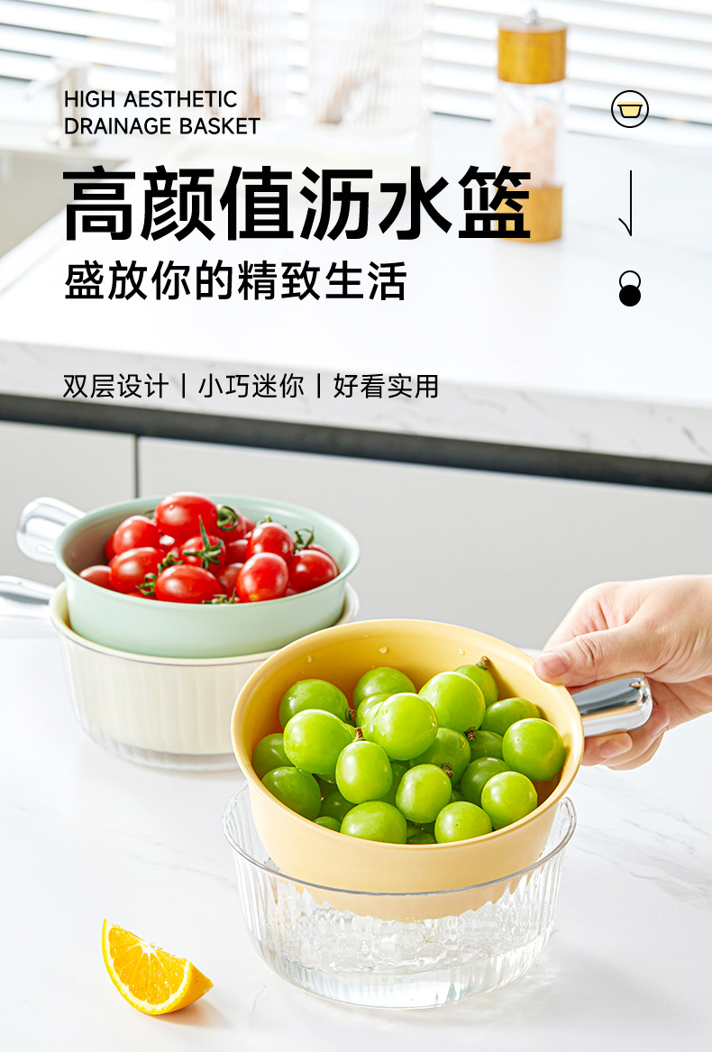 Handle Kitchen Fruit and Vegetable Washing Strainer Basket