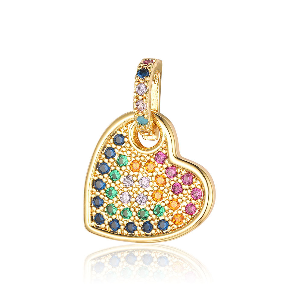 Heart-shaped colored zirconium copper micro-inlaid necklace pendant