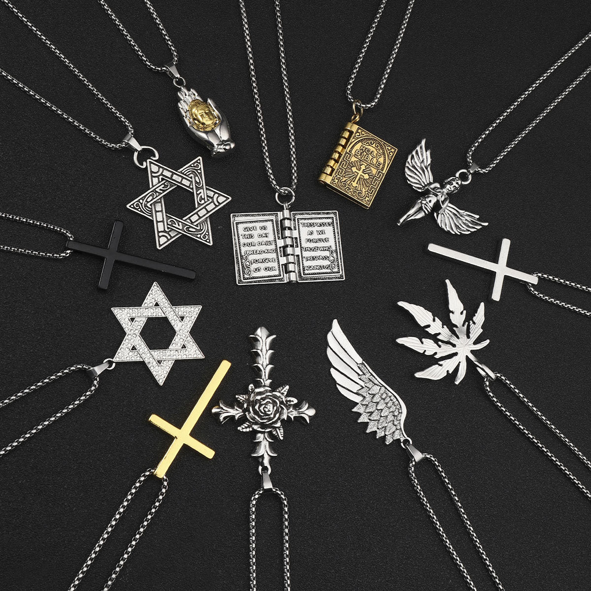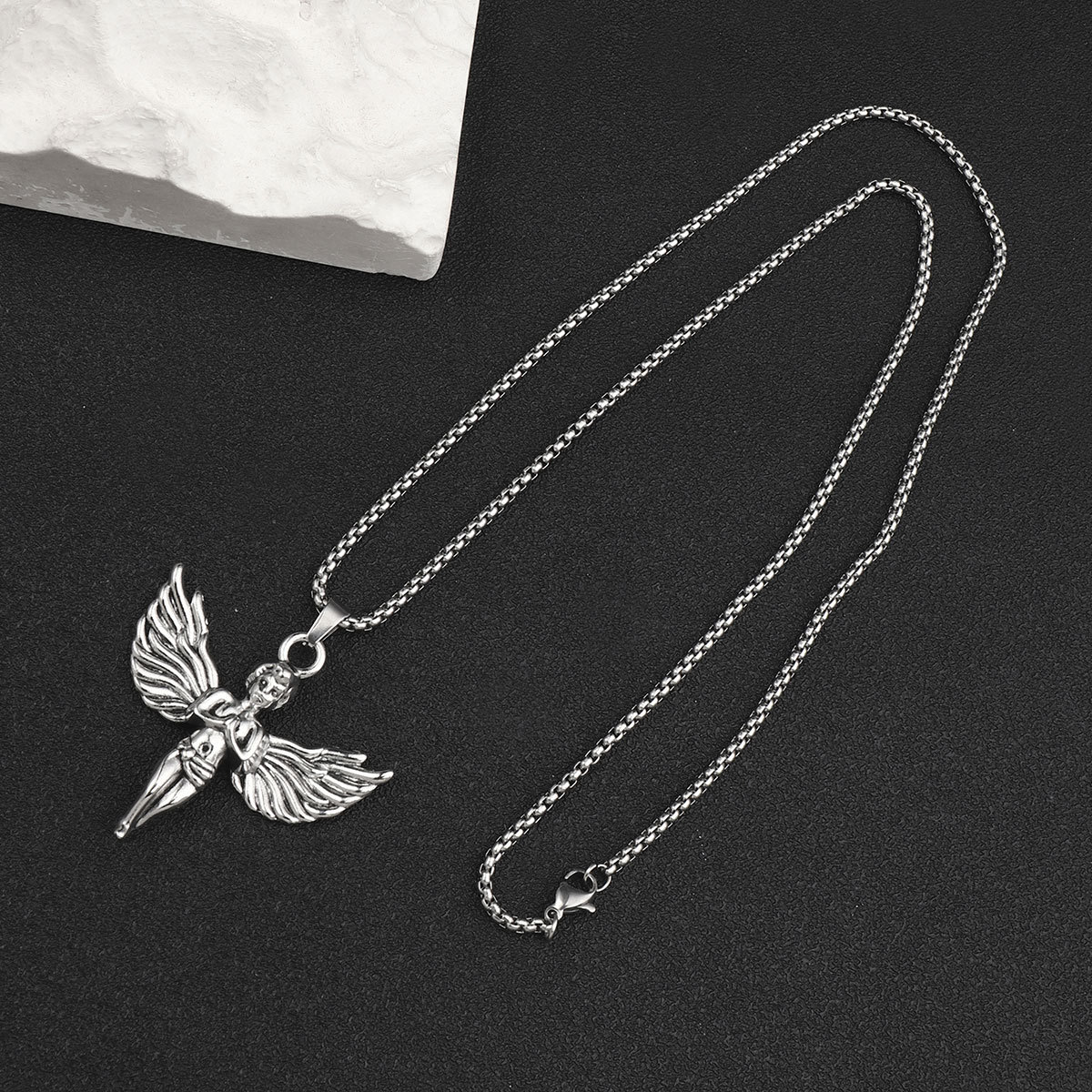 Hip Hop Wind Star Titanium Steel Pendant Wing Necklace