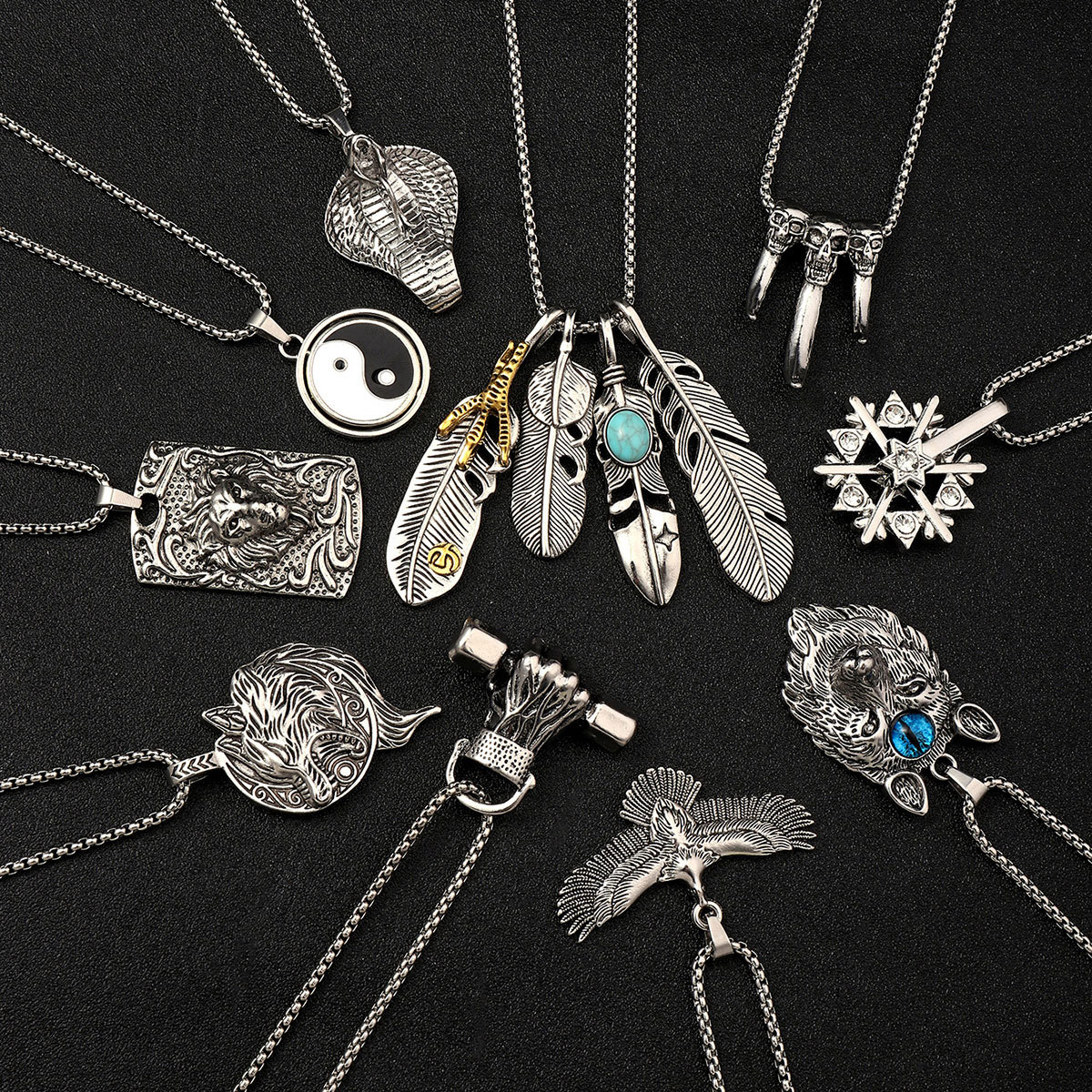 Hip Hop Wind Wolf Head Titanium Steel Men's Pendant Necklace