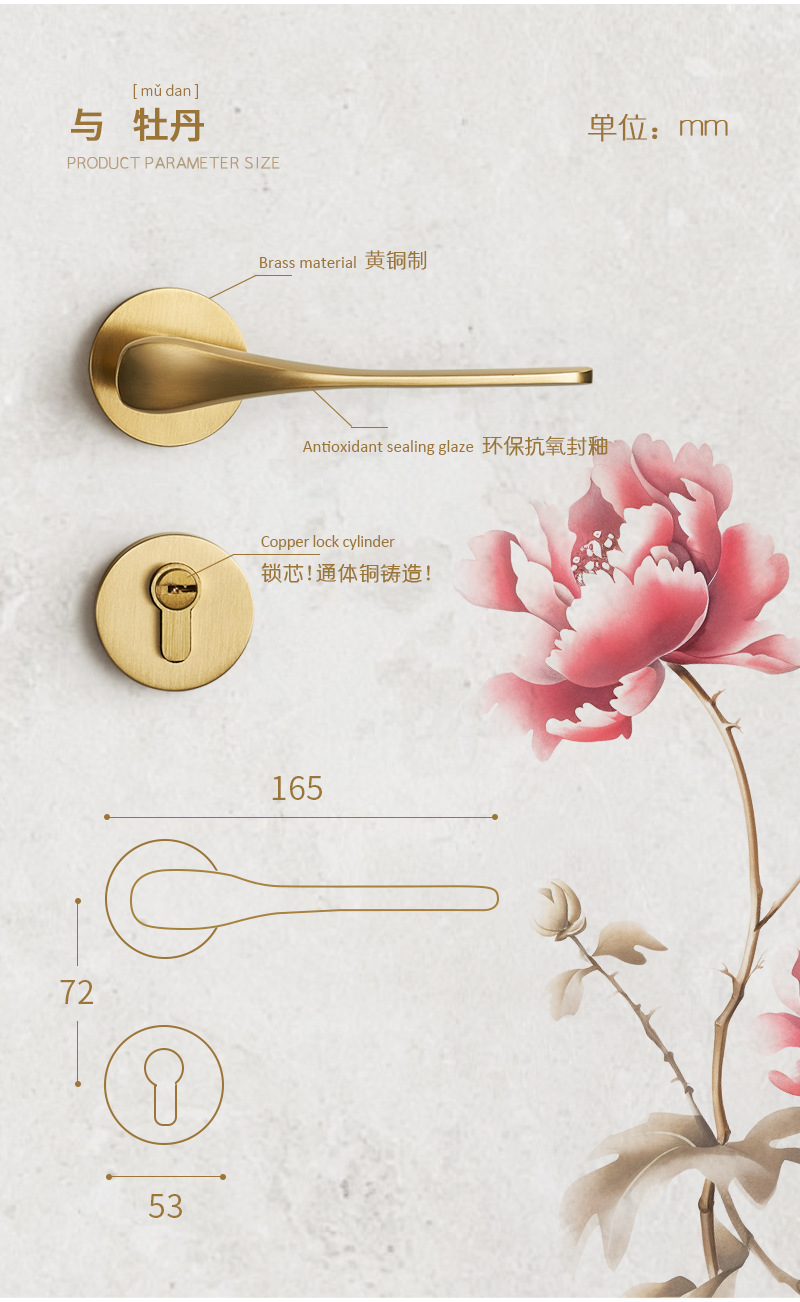 fashion Brass silent door lock