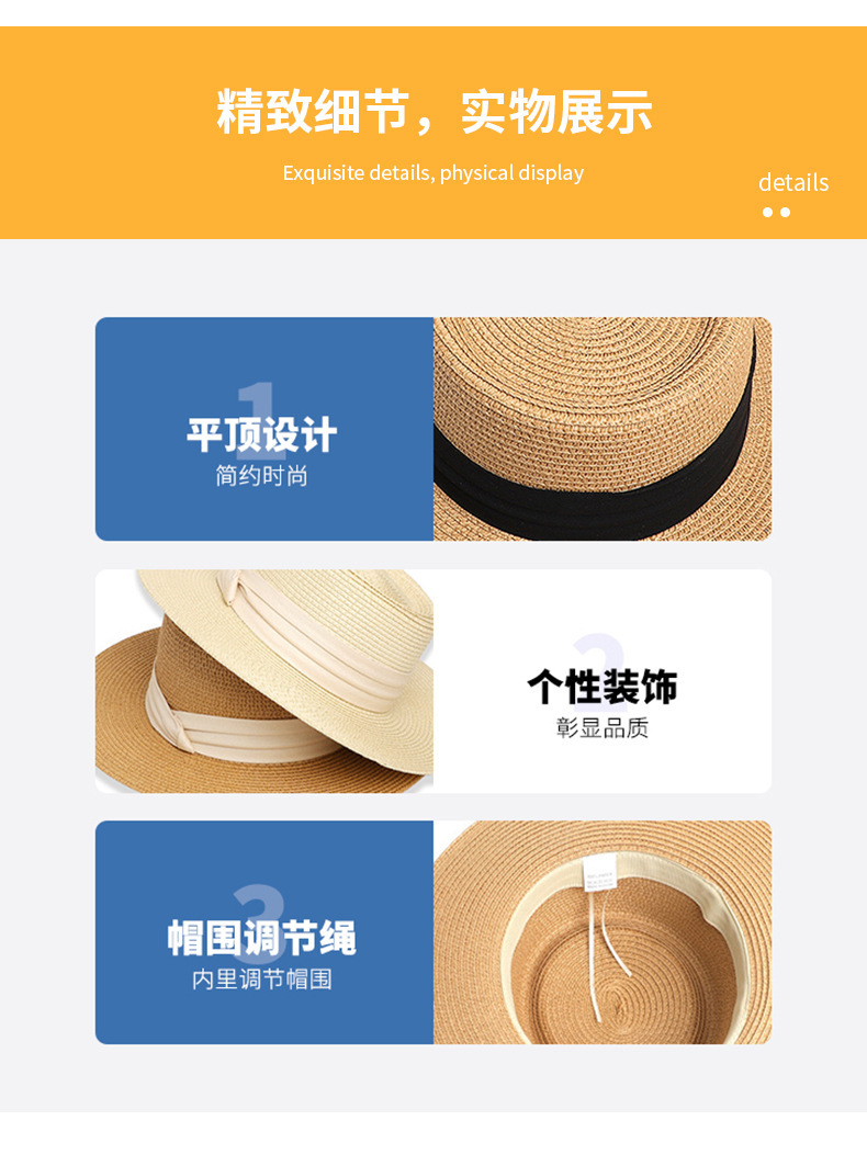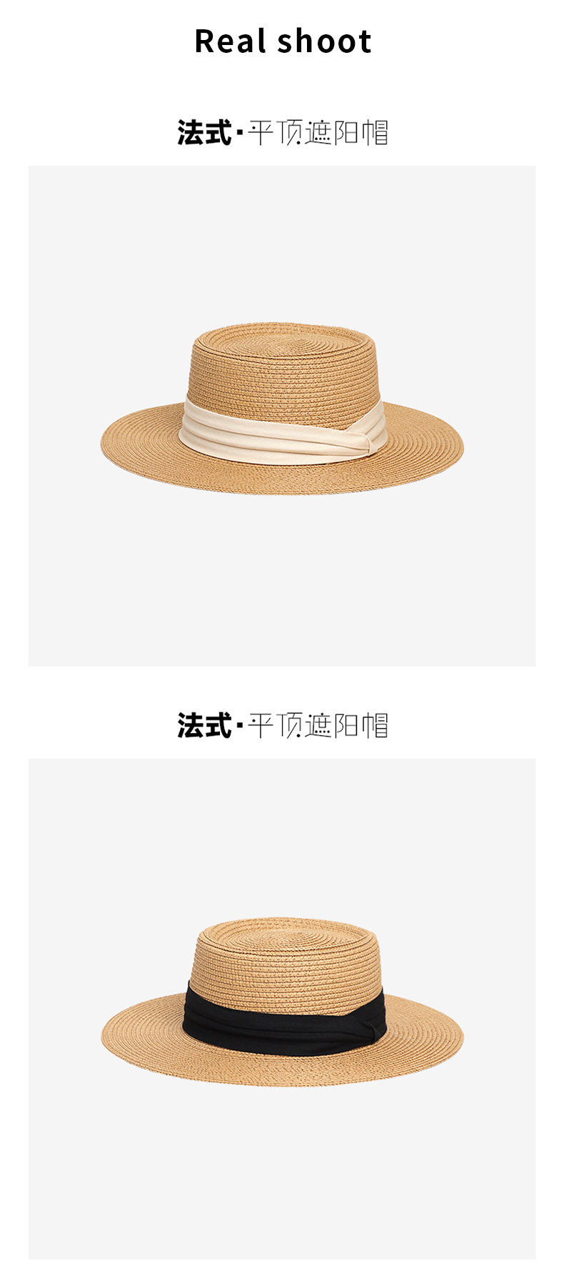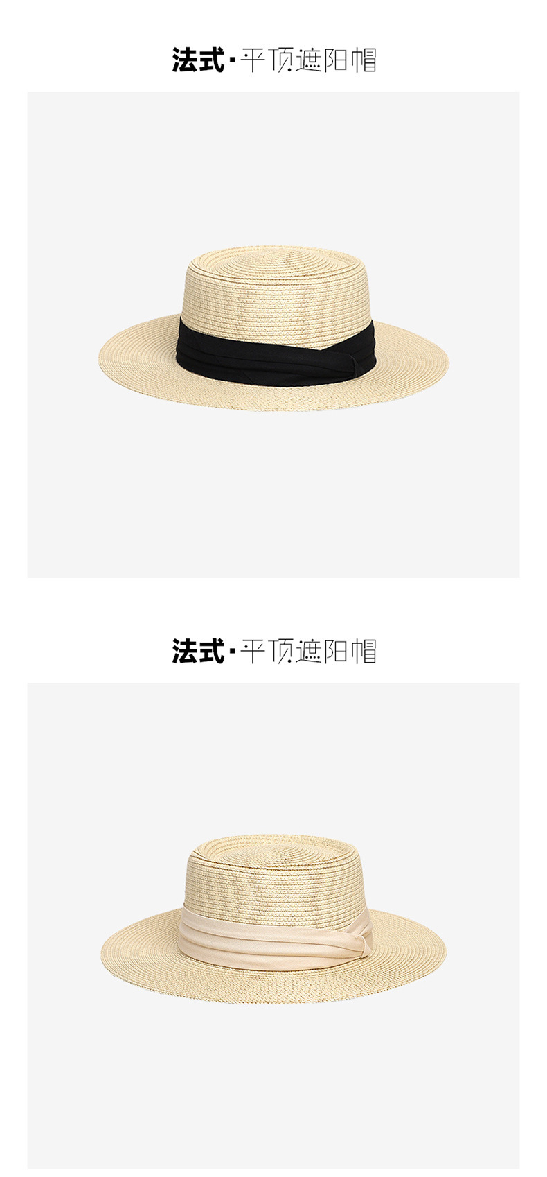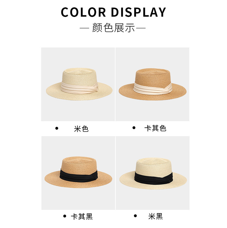 Flat-Top Straw Hat French-Style Summer Wide-Brim Sun Hat
