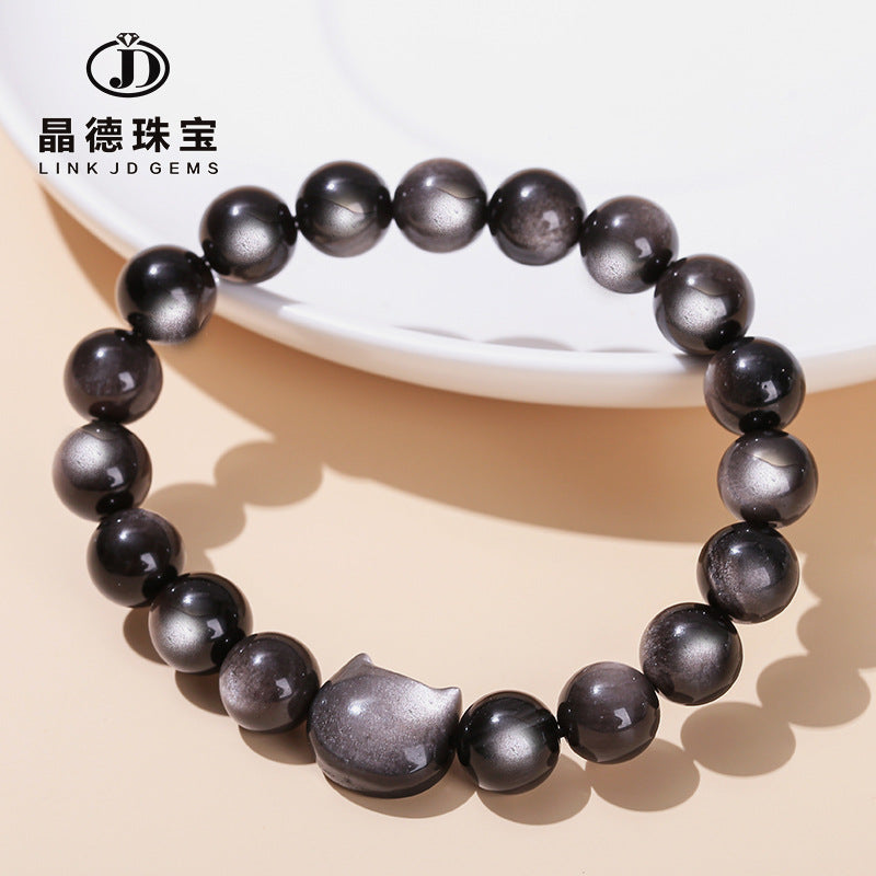 7A Natural Silver Obsidian Faceless Cat Bracelet