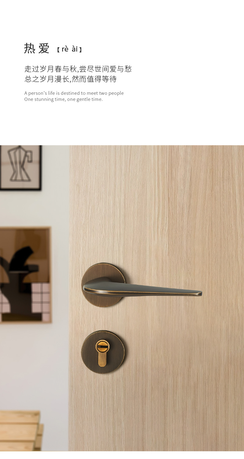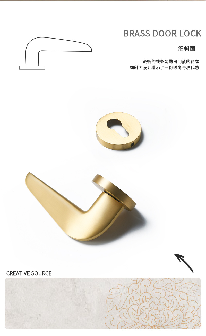 Gold silent brass door lock
