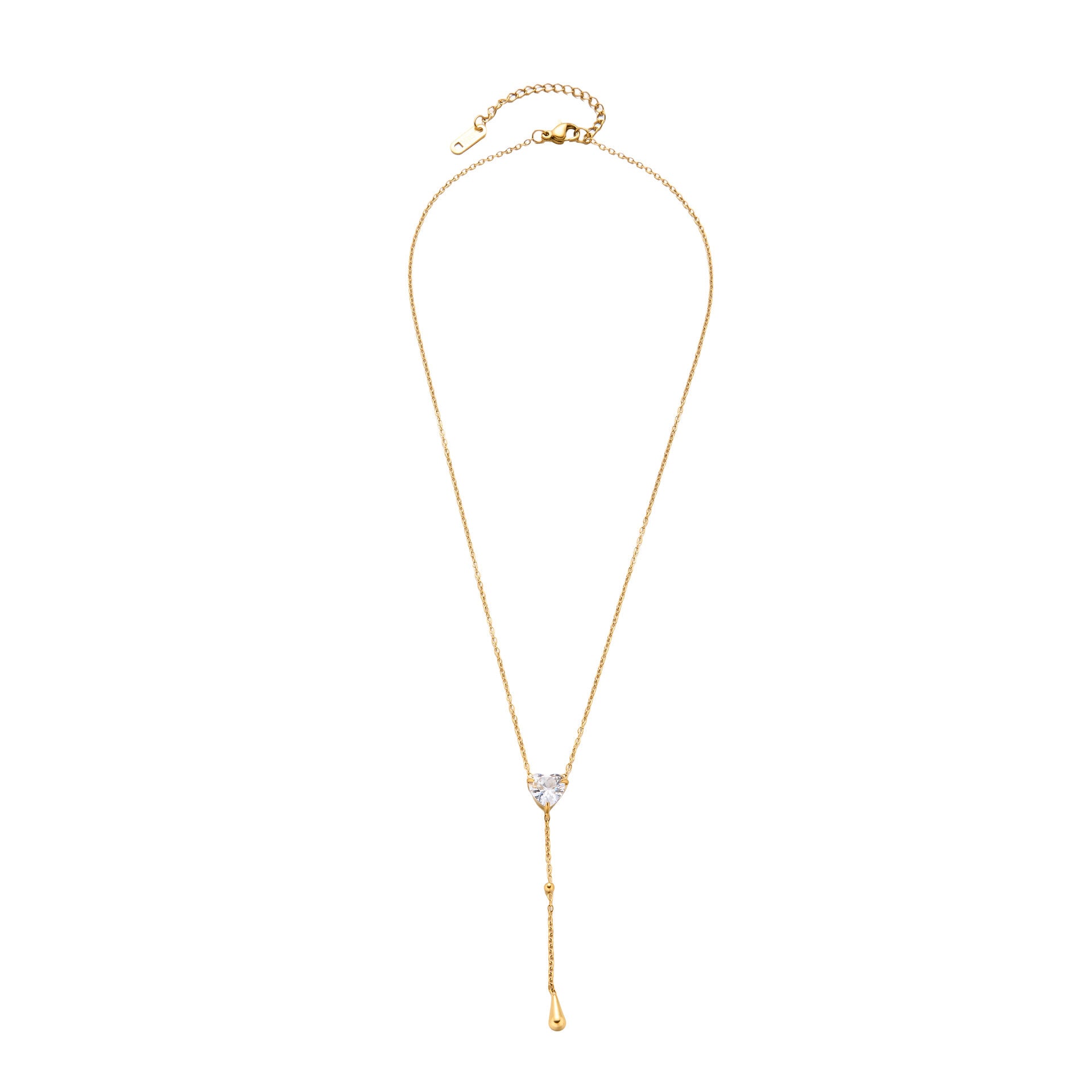 SKU:YY-0955-Gold Love Diamond Tassel Necklace