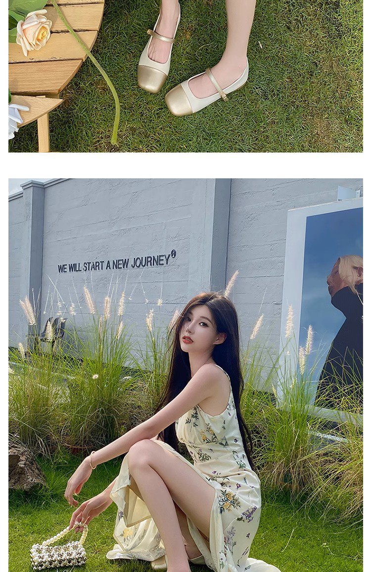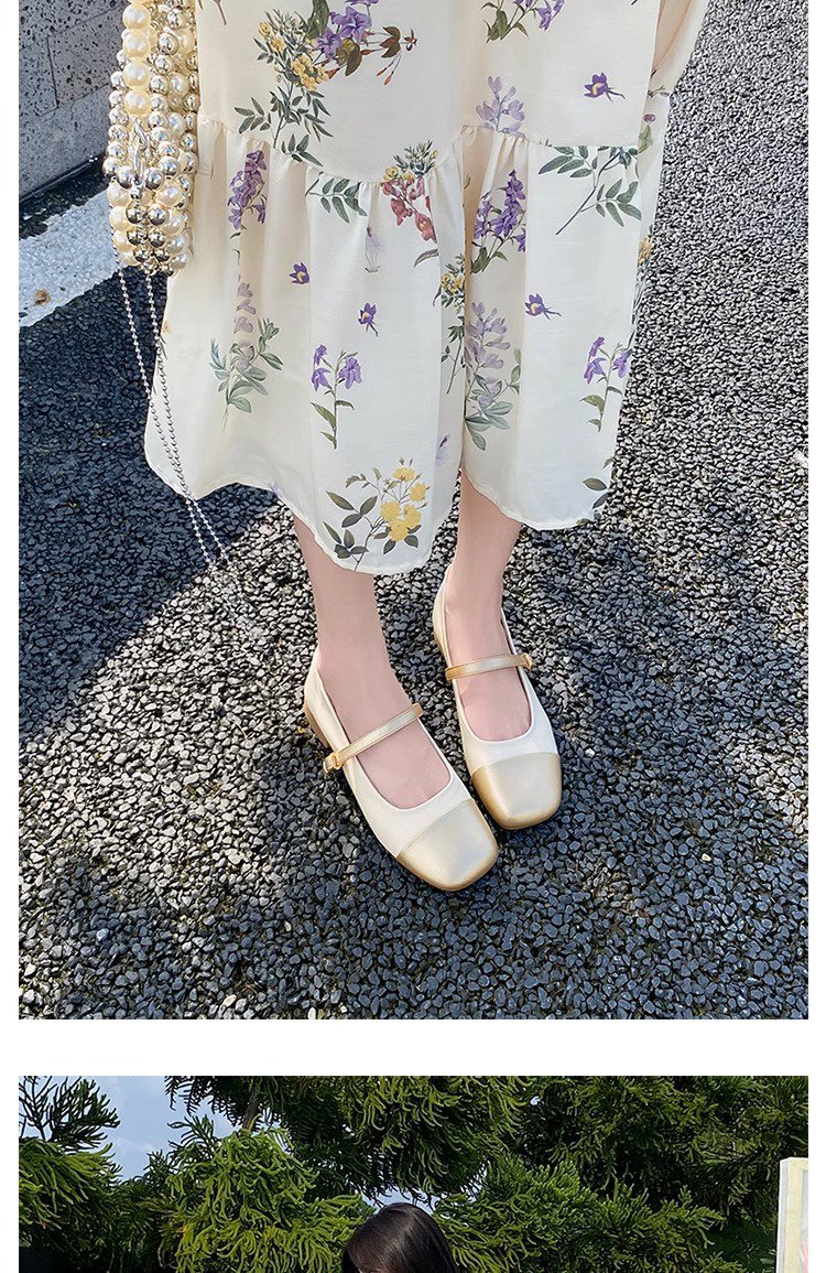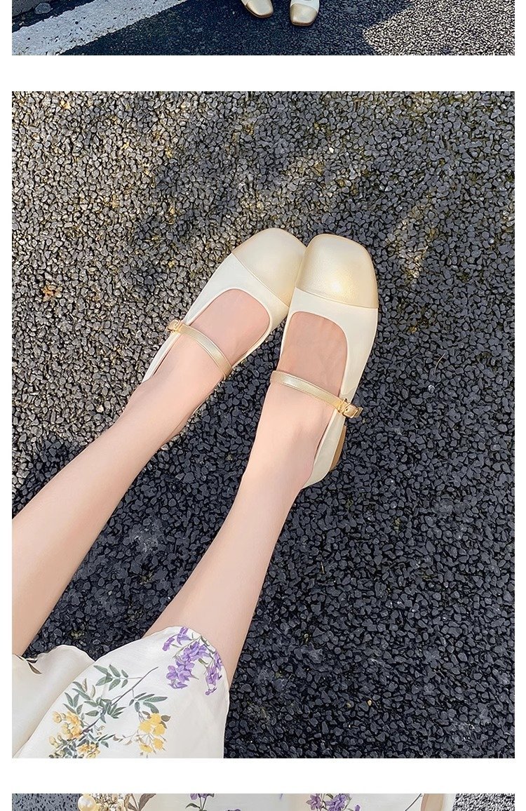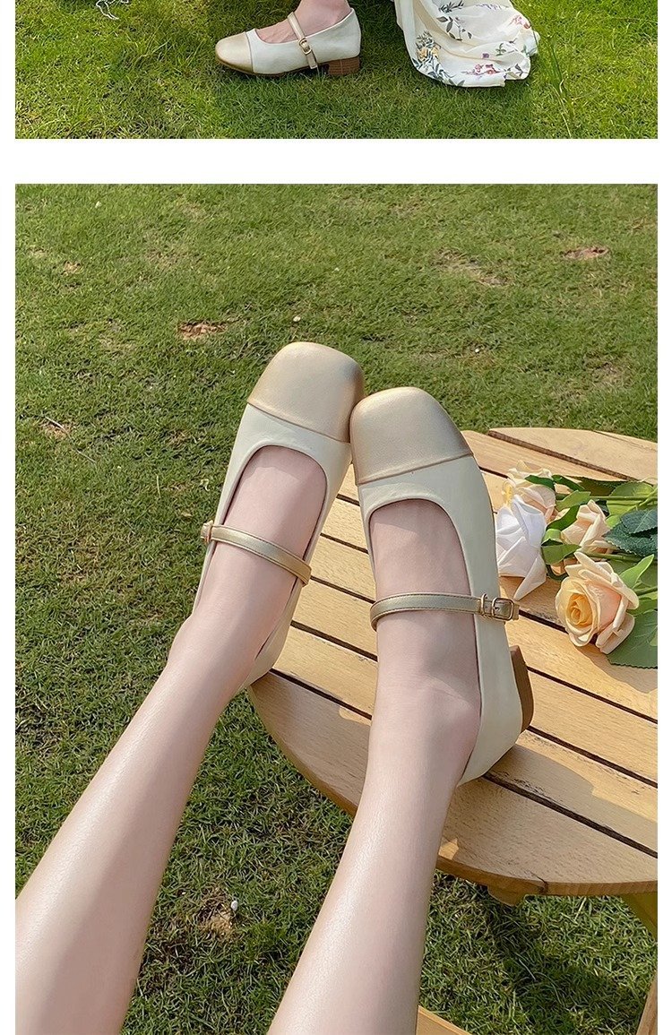 Gold single shoes thick heel leather shoes