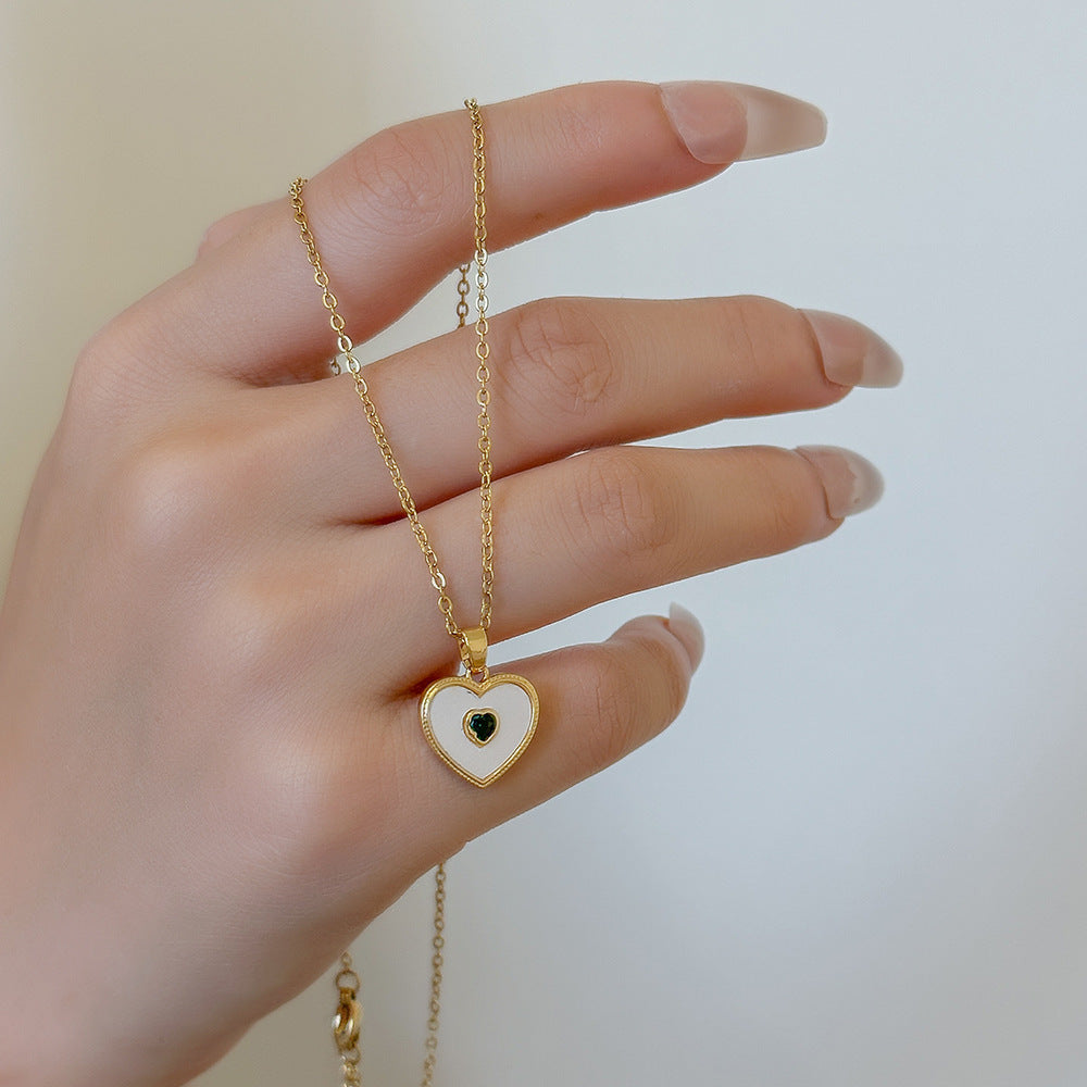 SKU:YY-0112-Do not fade white shell love green diamond