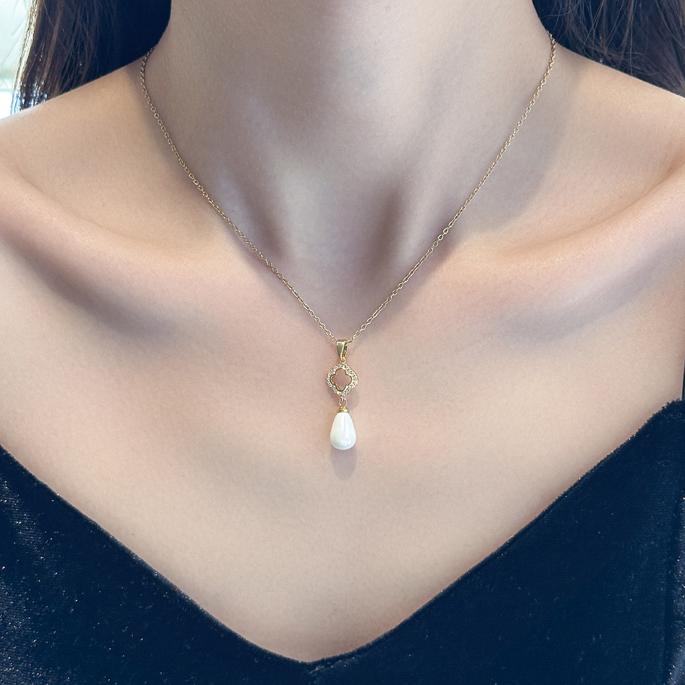 SKU:YY-0067-Four-leaf clover pearl necklace