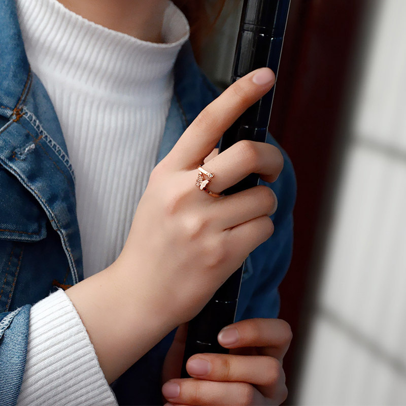 SKU:YY-0468-J036-Butterfly Ring - Rose Gold-Opening adjustable