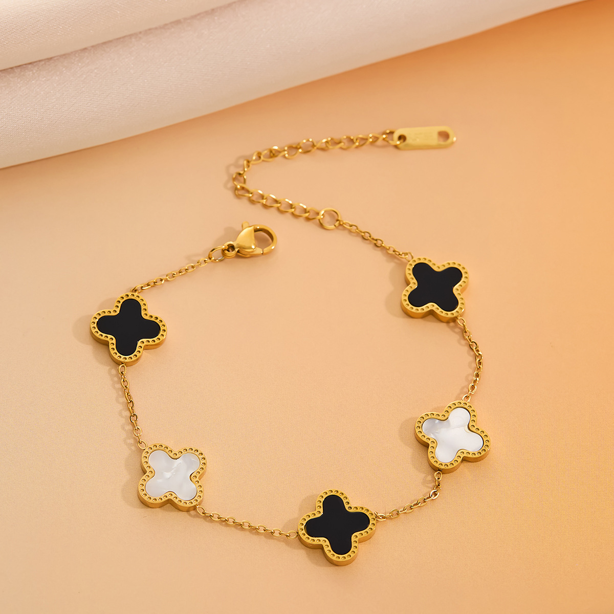 SKU:YY-0653-Steel full diamond five flower bracelet