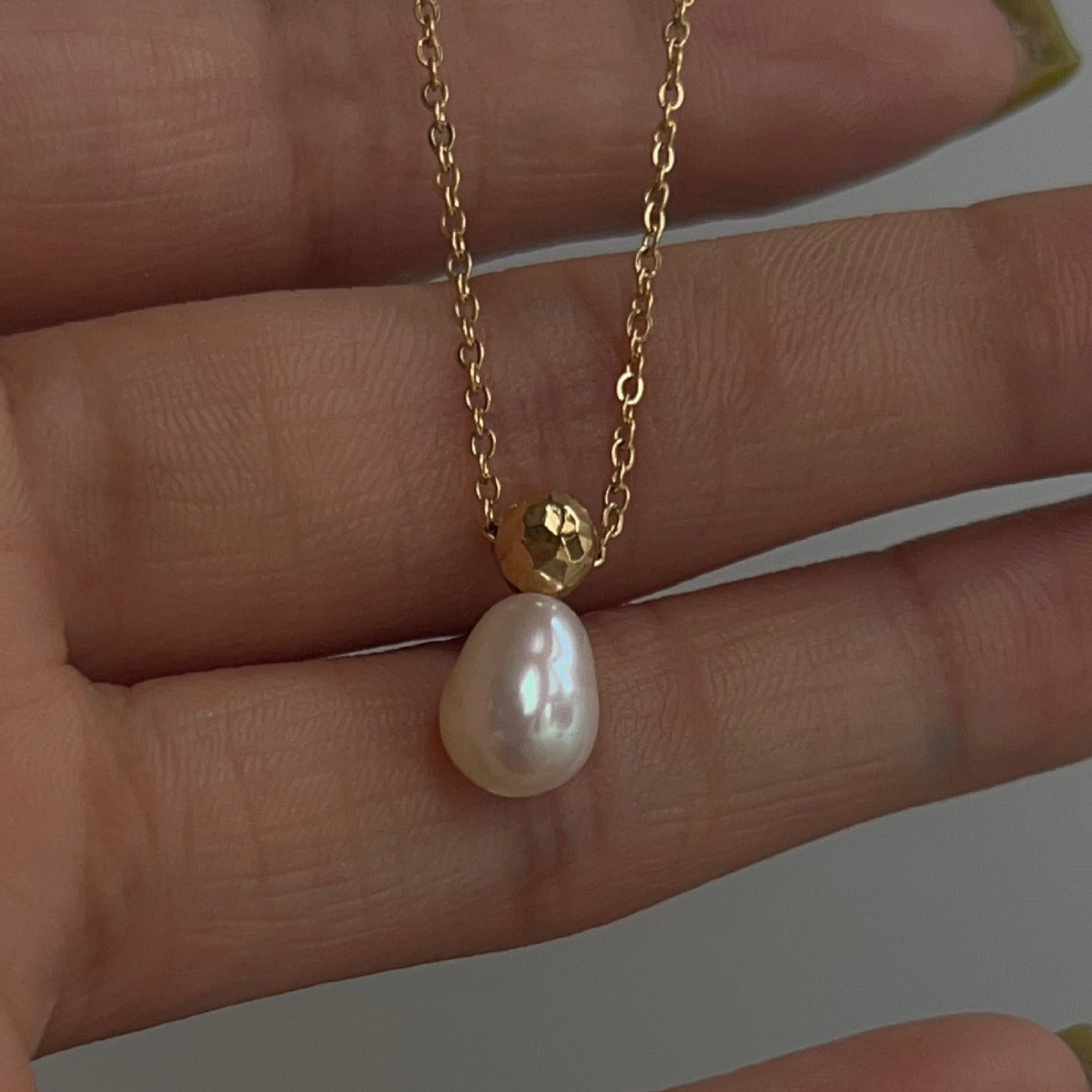 SKU:YY-1055-Water drop artificial bead necklace, gold