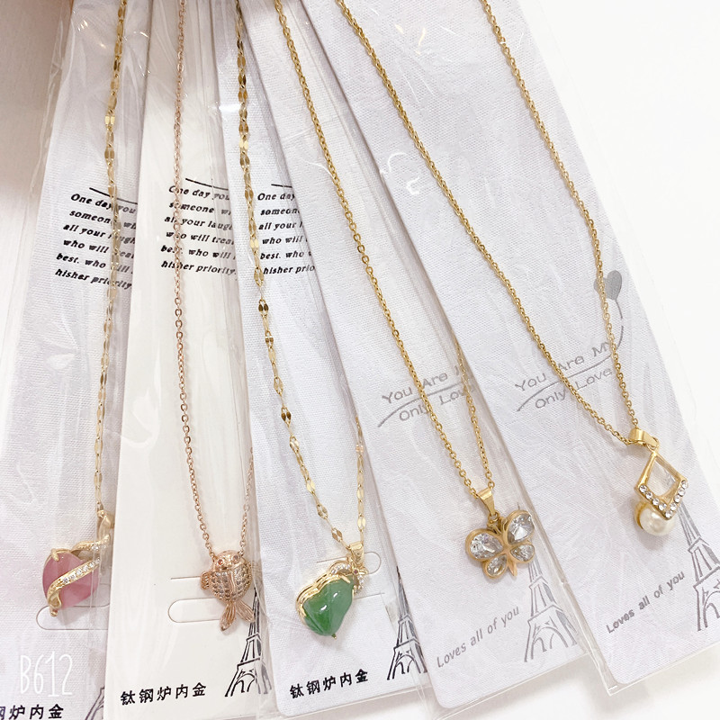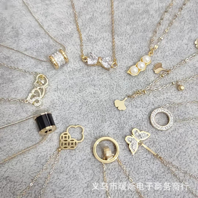 SKU:YY-1121-3.5 yuan mixed three-color titanium steel necklace, not selected for domestic sales