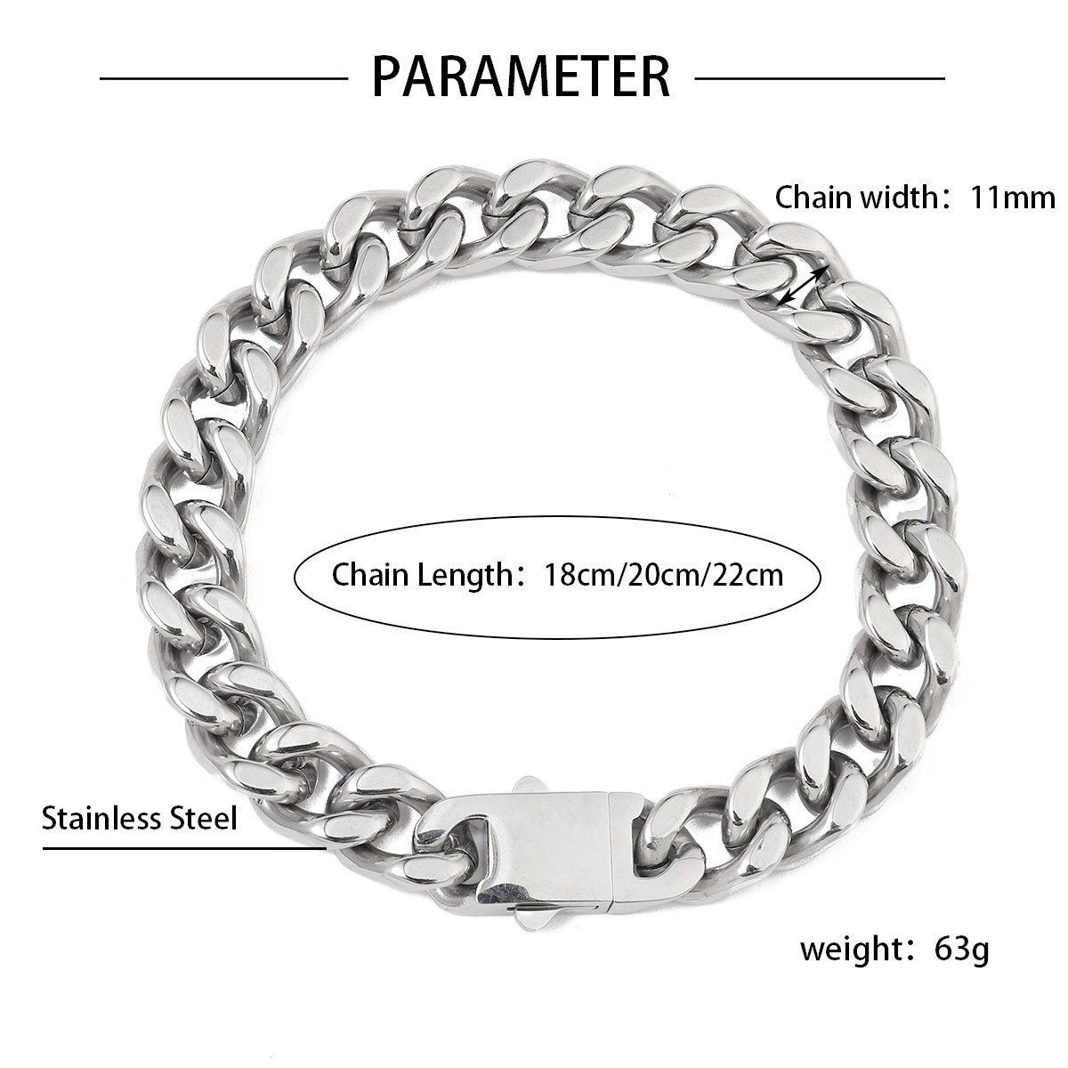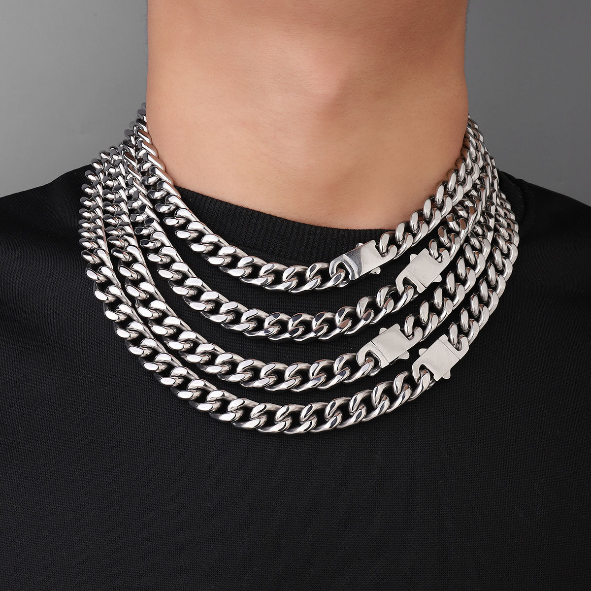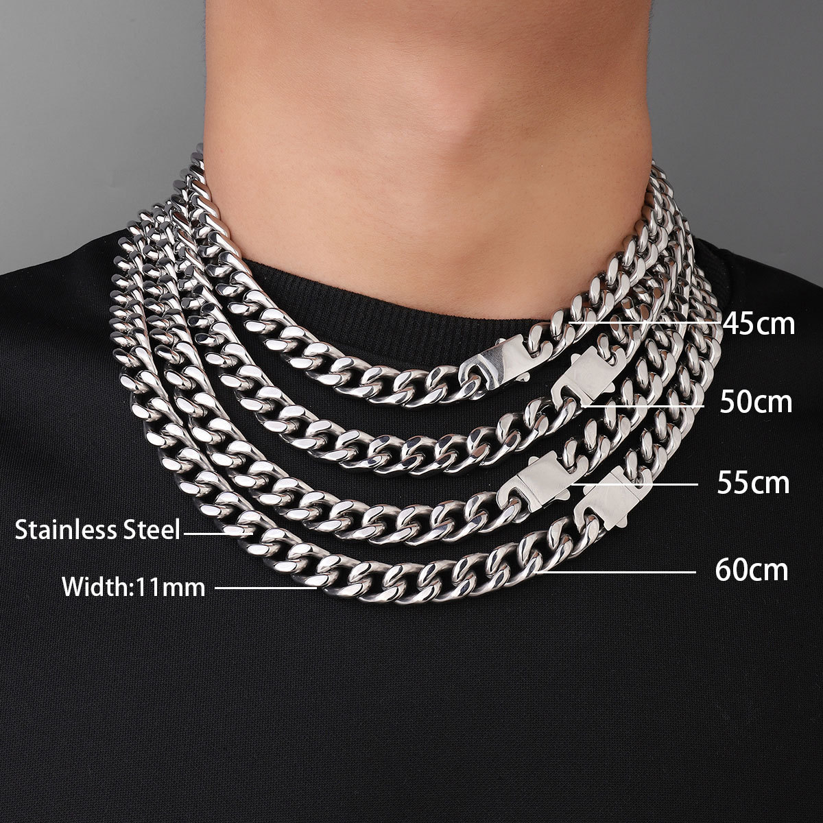 fashion Titanium Steel Cuban Chain Necklace Men's 11mm
