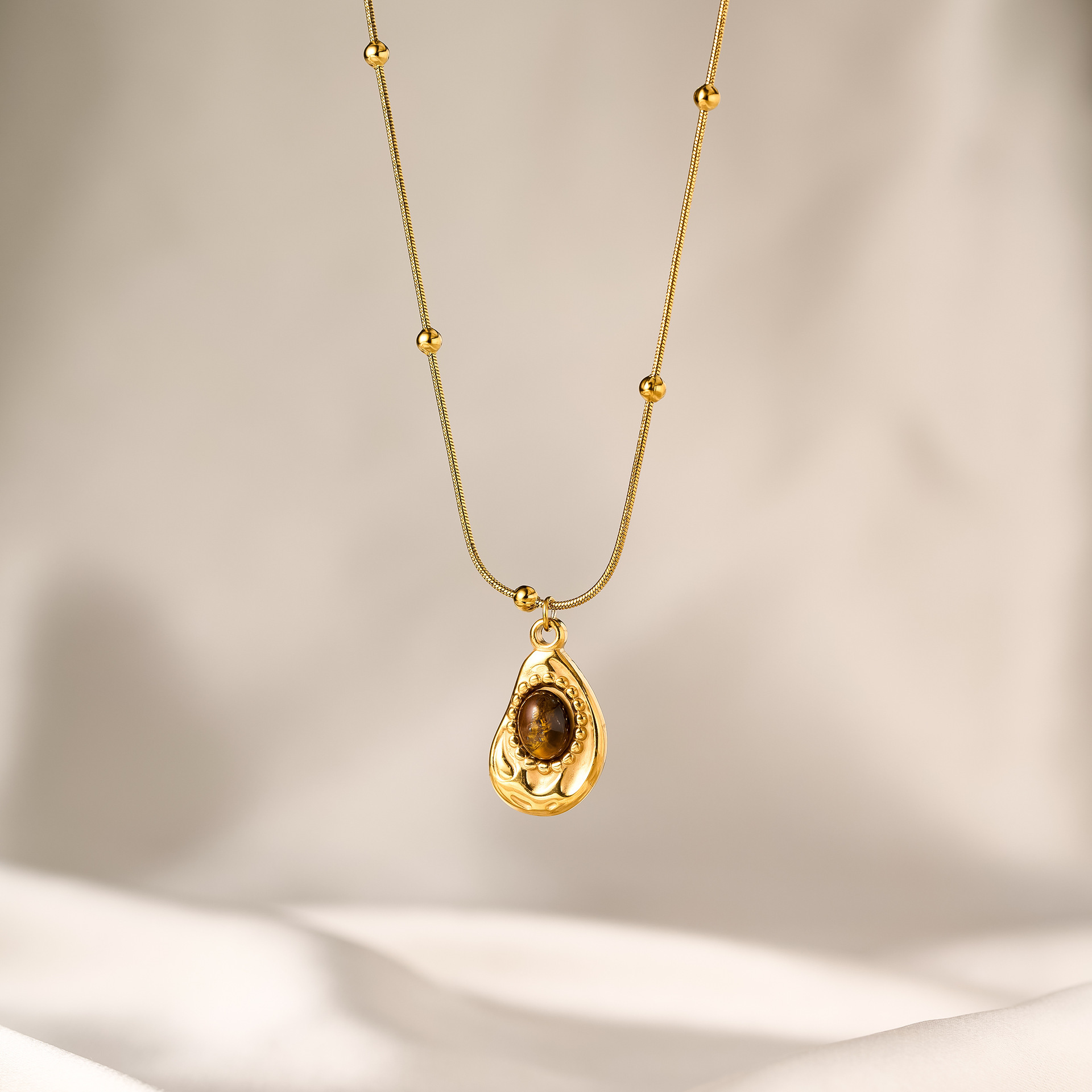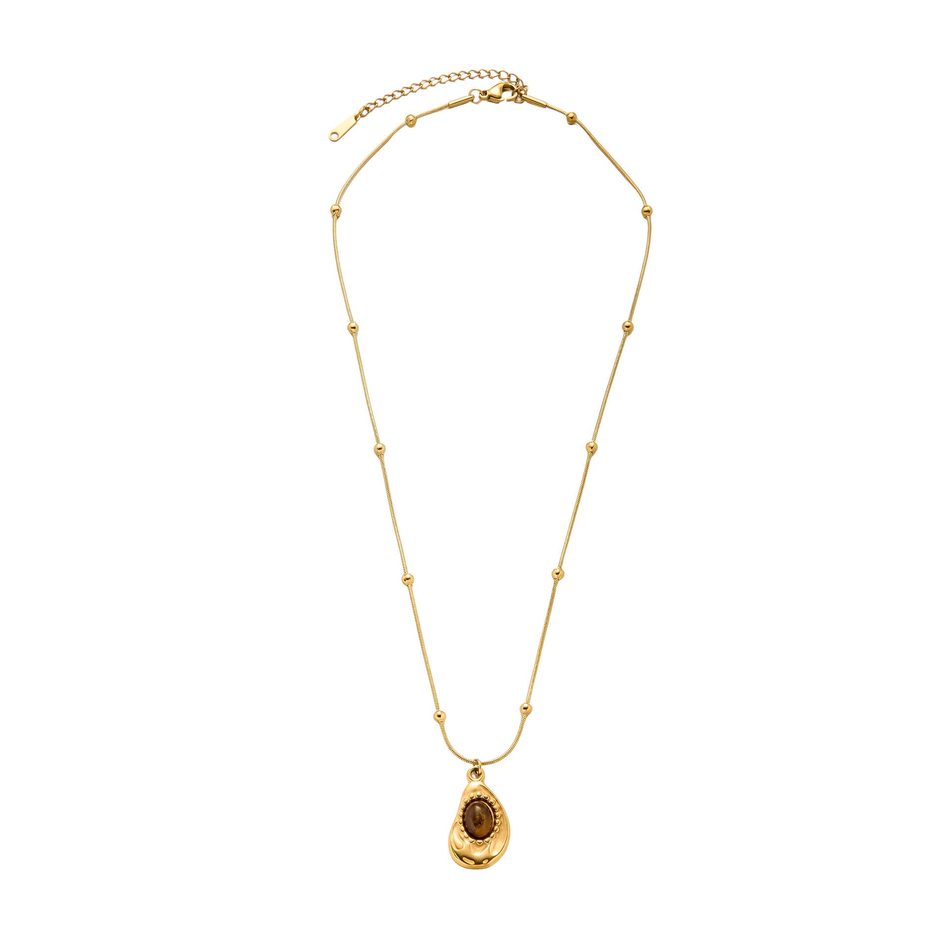 SKU:YY-0987-Gold - Irregular Tiger's Eye Necklace