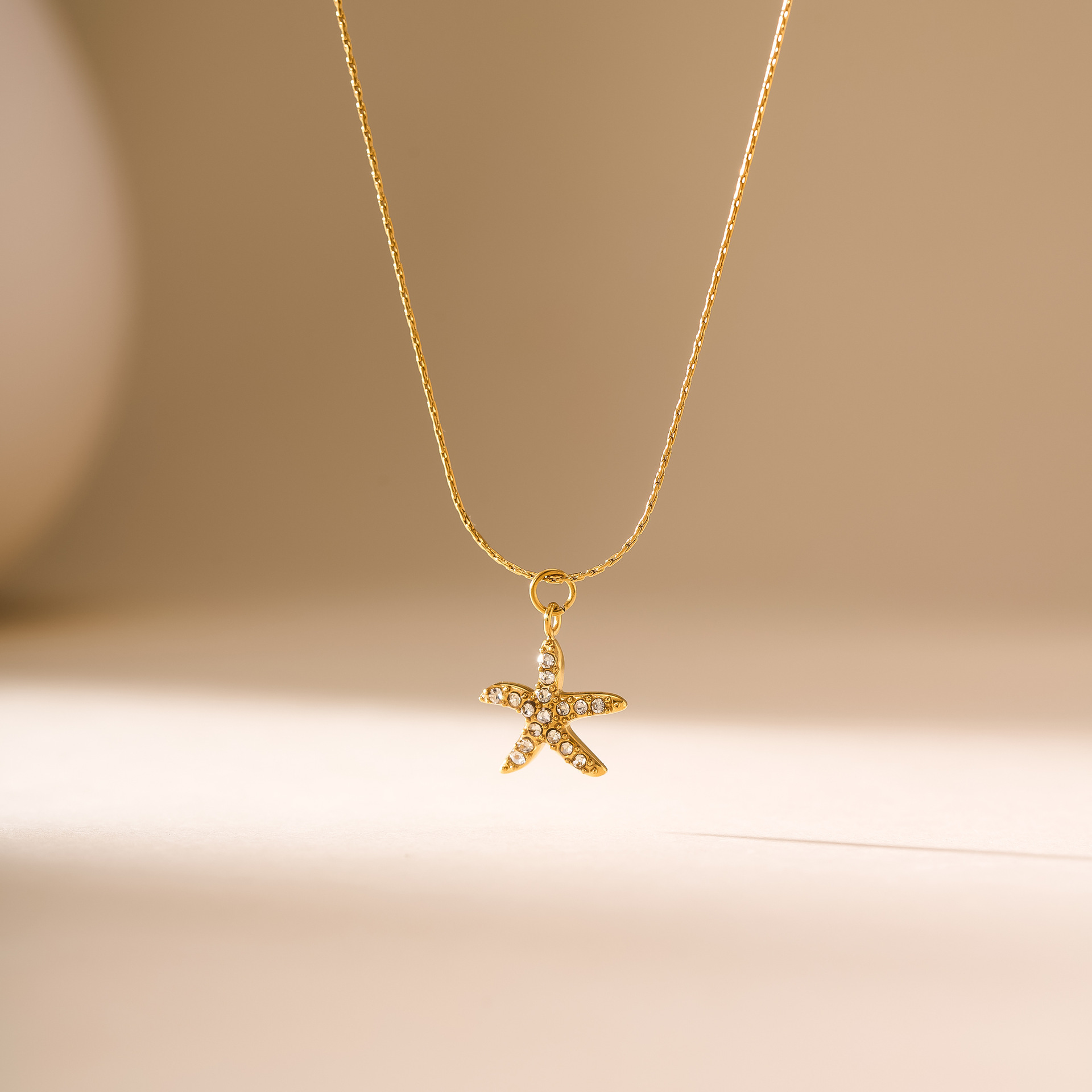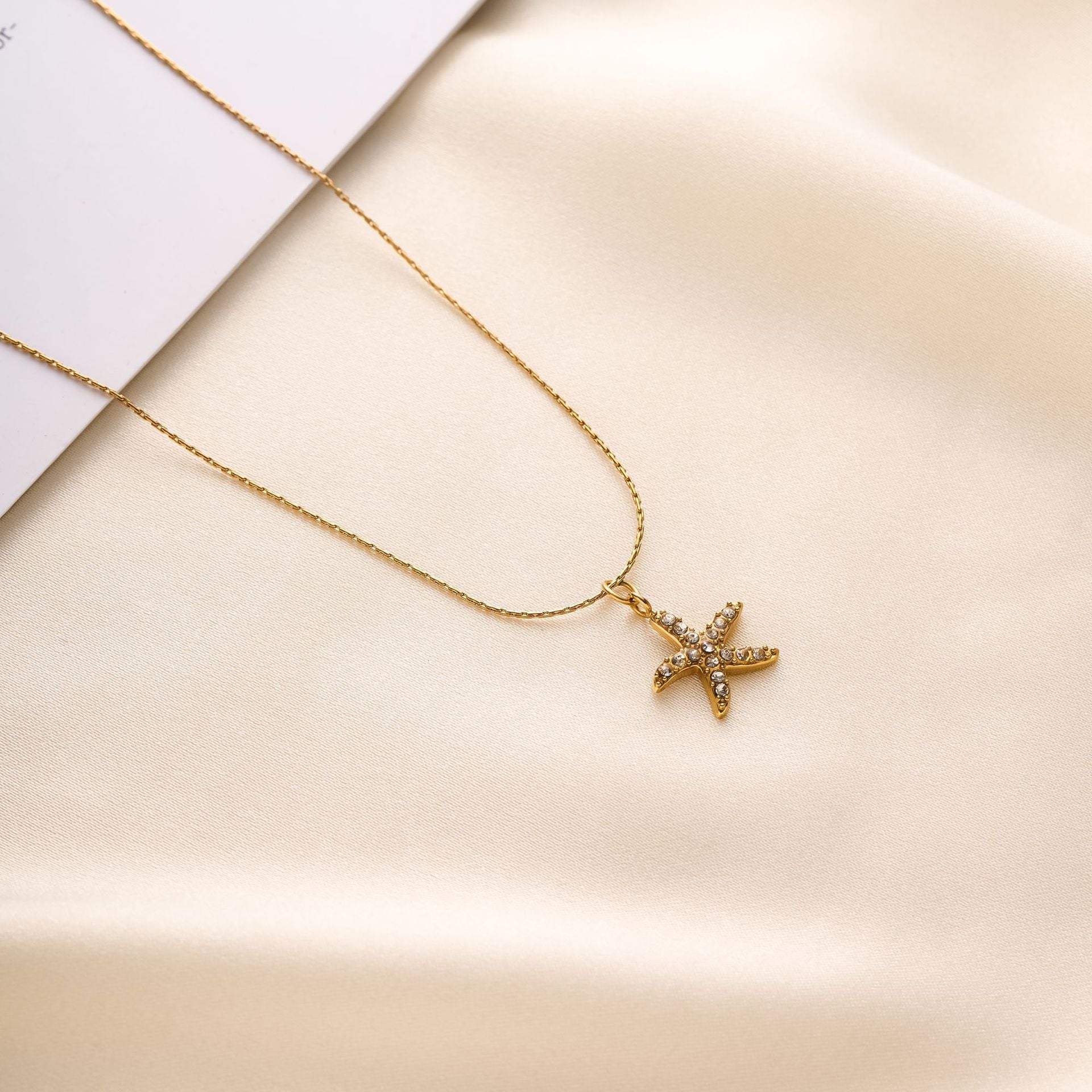 SKU:YY-0936-Gold Diamond Starfish Necklace