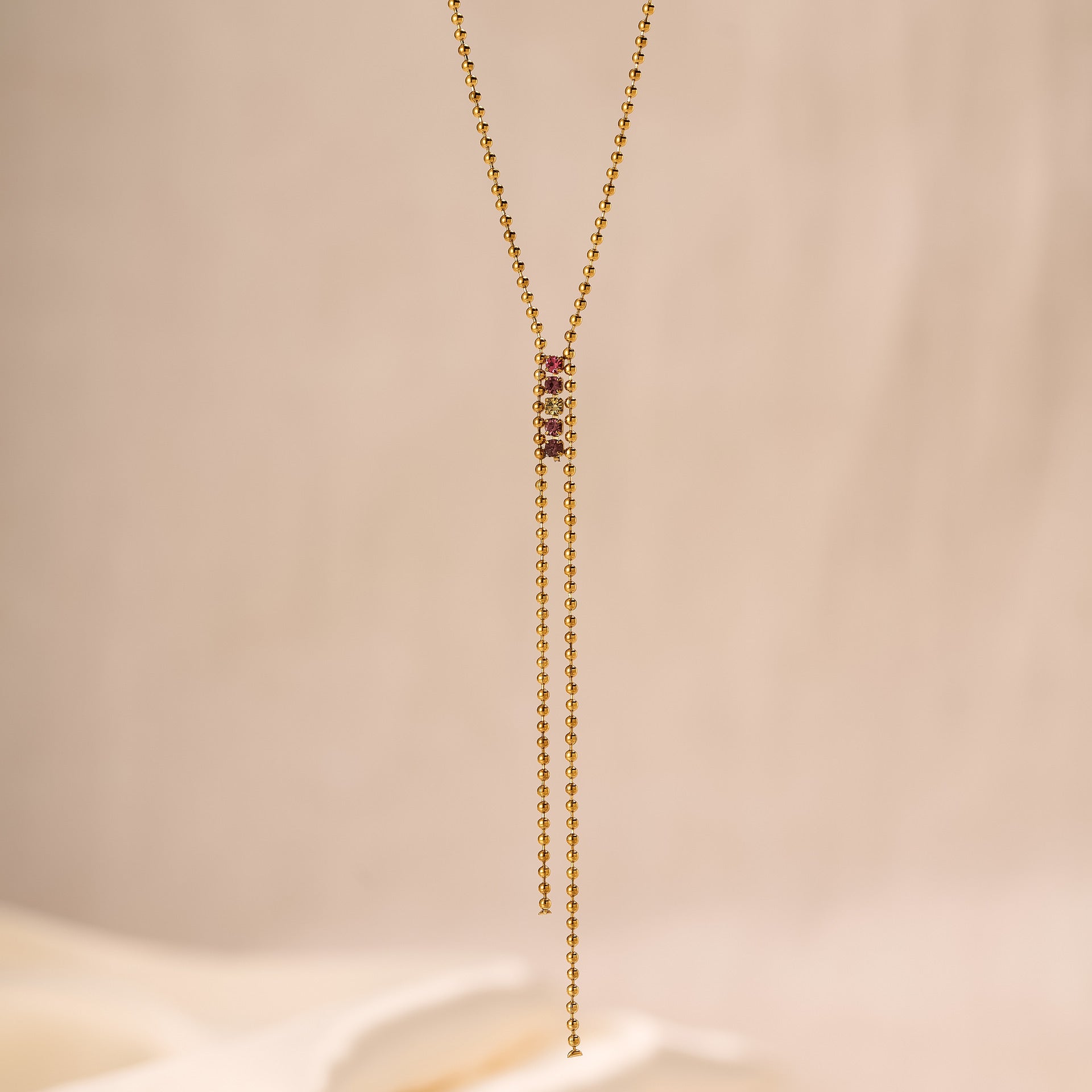 SKU:YY-0986-Gold rice bead colored diamond necklace