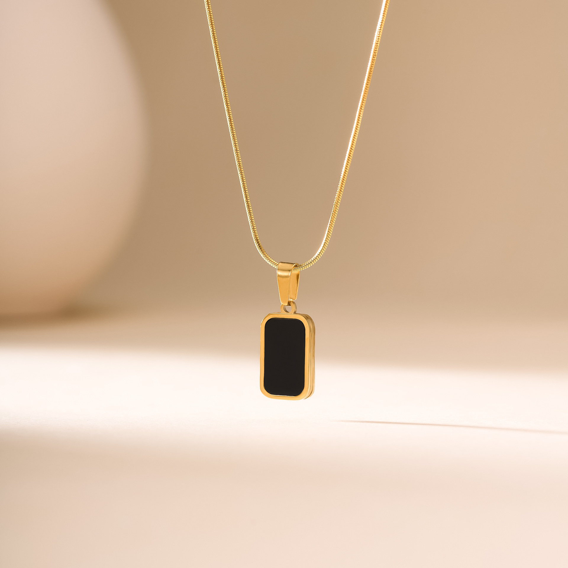 SKU:YY-0916-Golden Snake Bone Chain Square Necklace