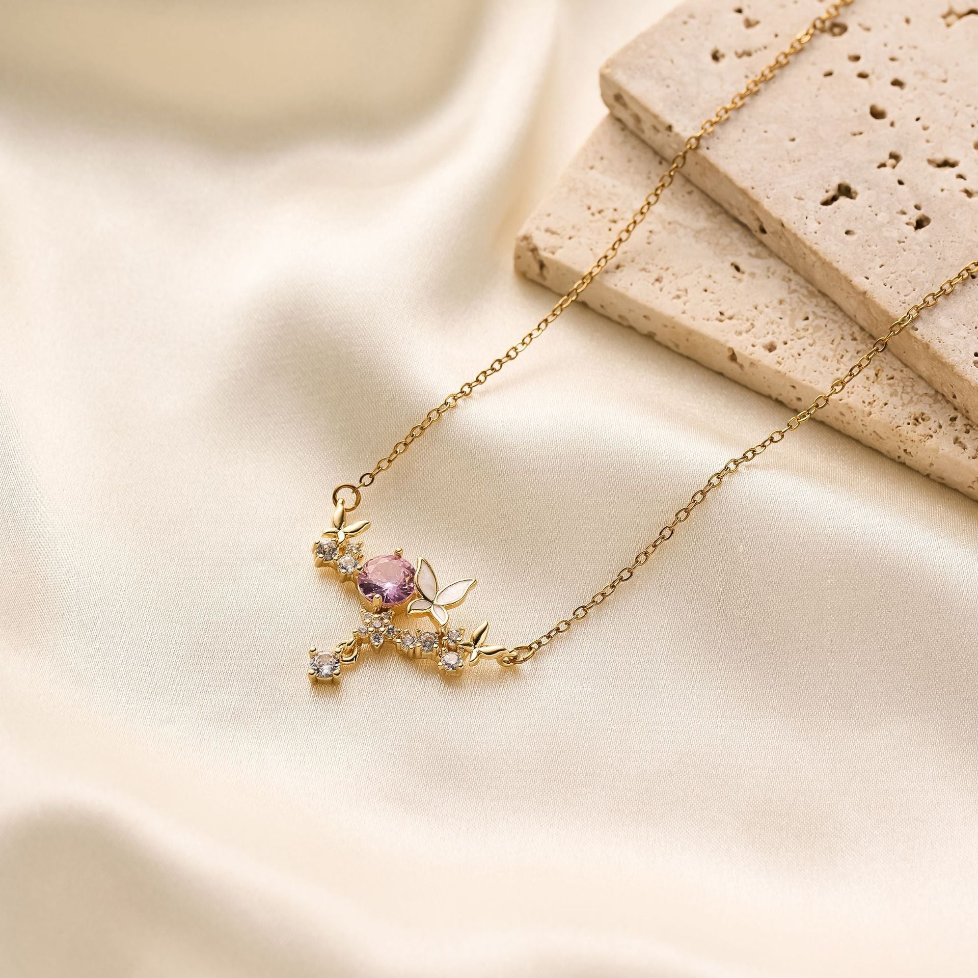 SKU:YY-0873-Golden Butterfly Small Flower Necklace