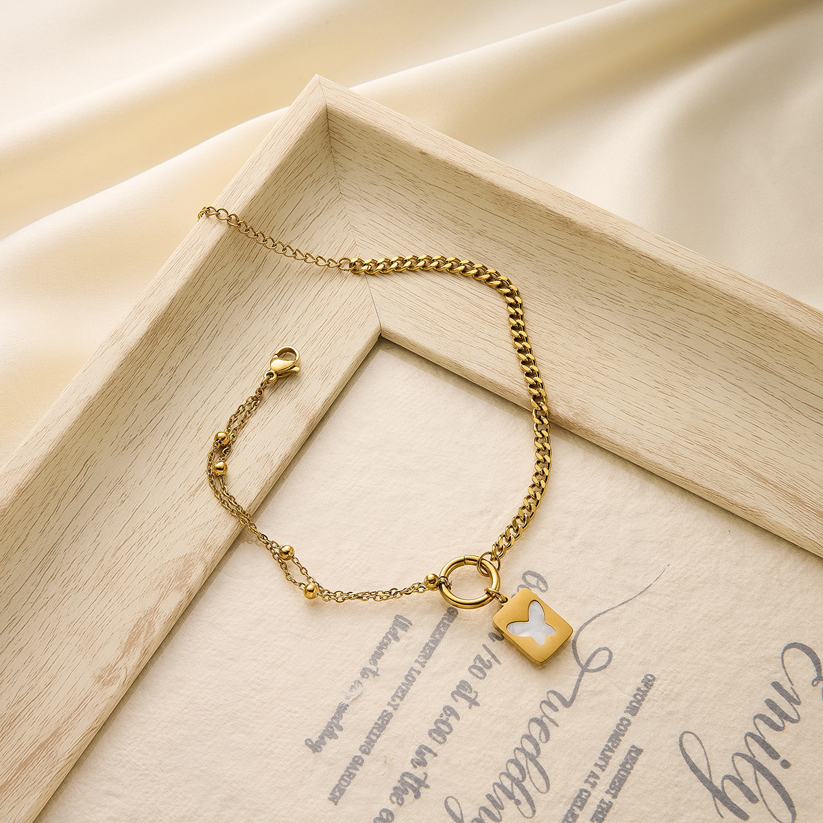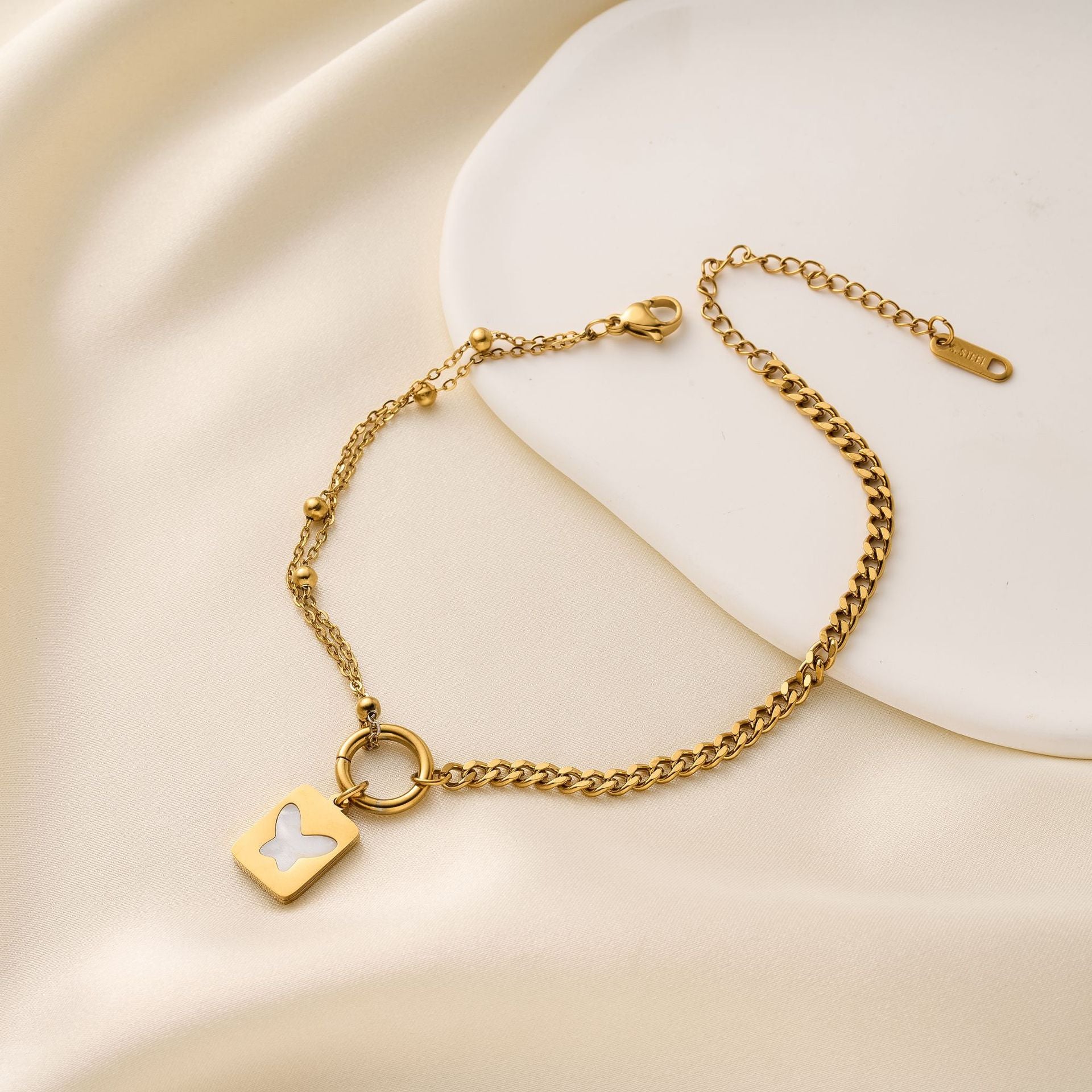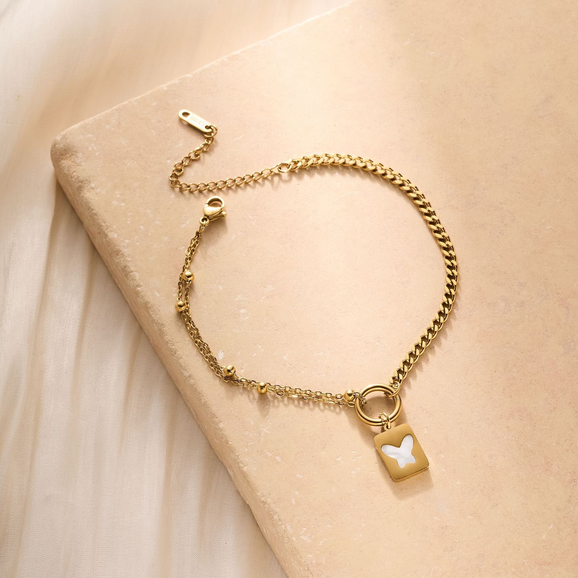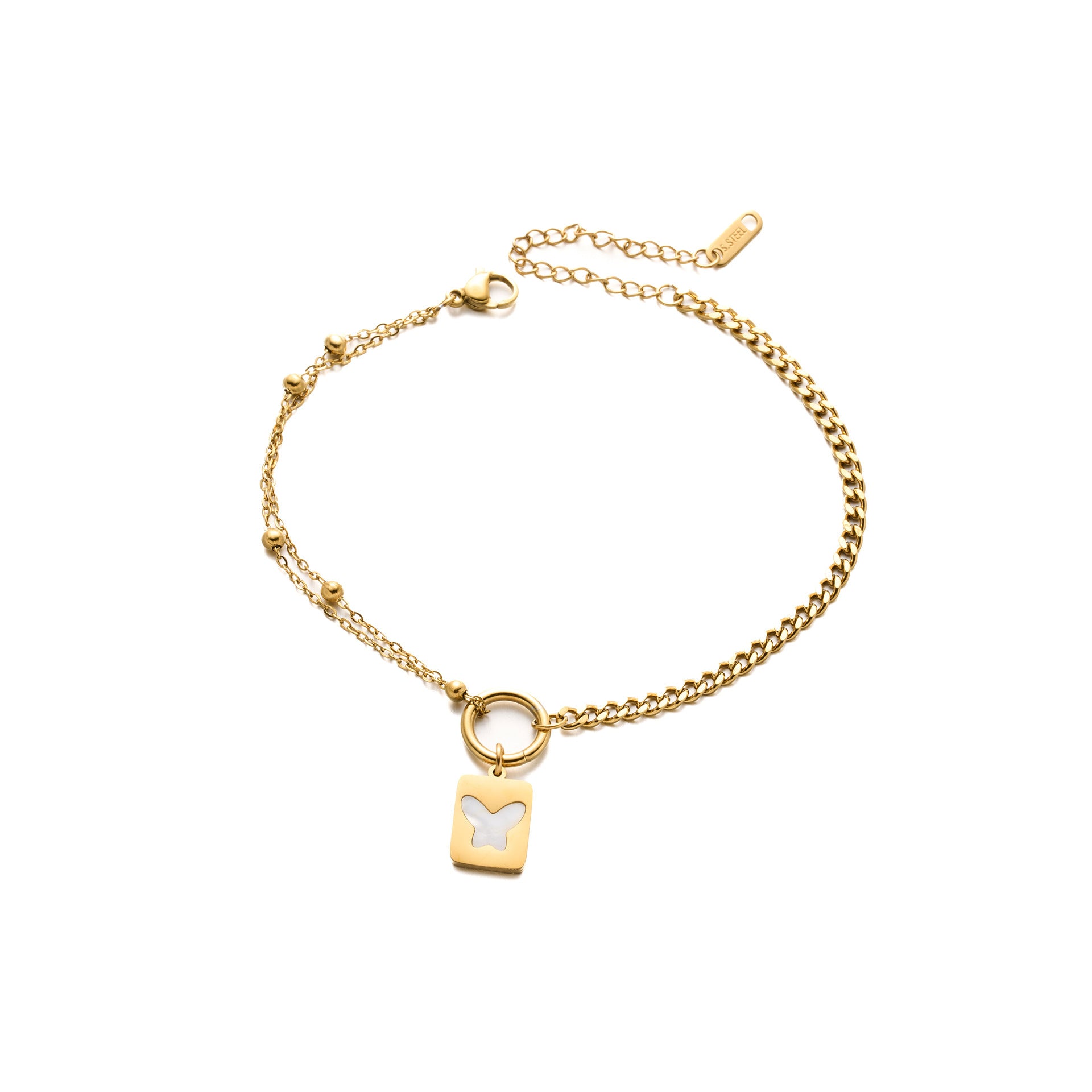 SKU:YY-0929-Golden white shell butterfly anklet