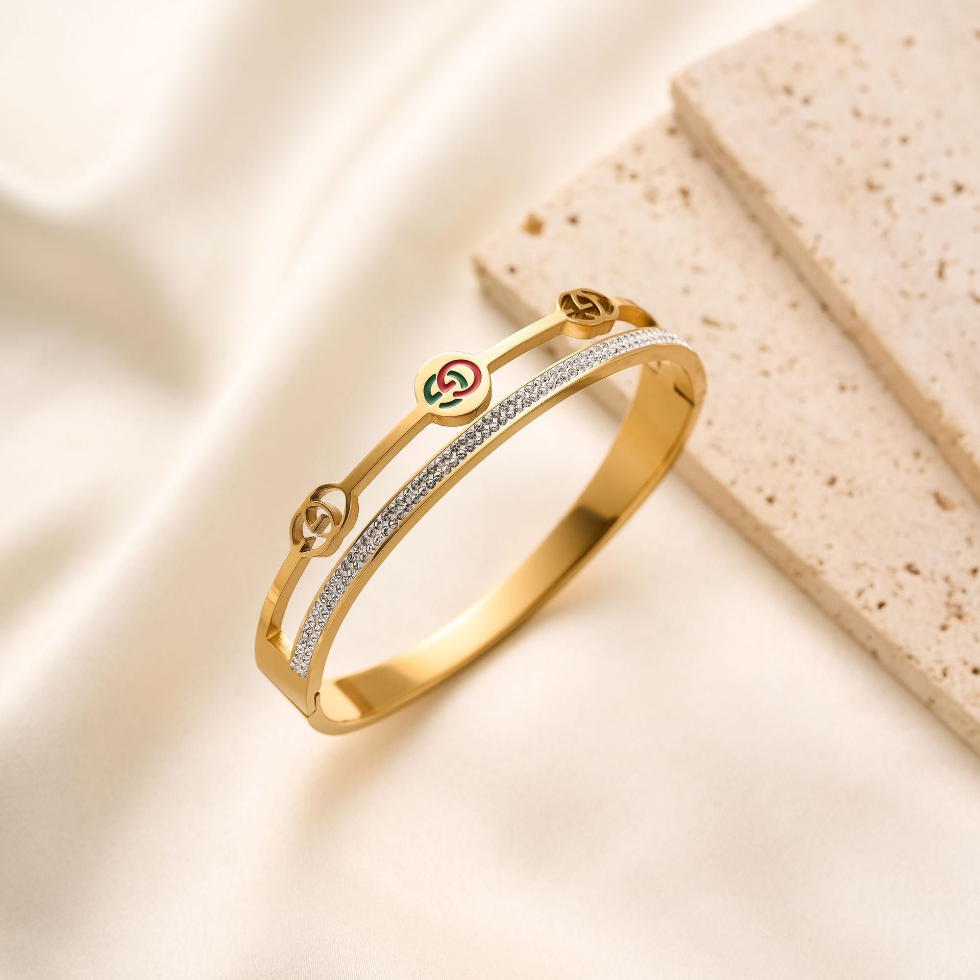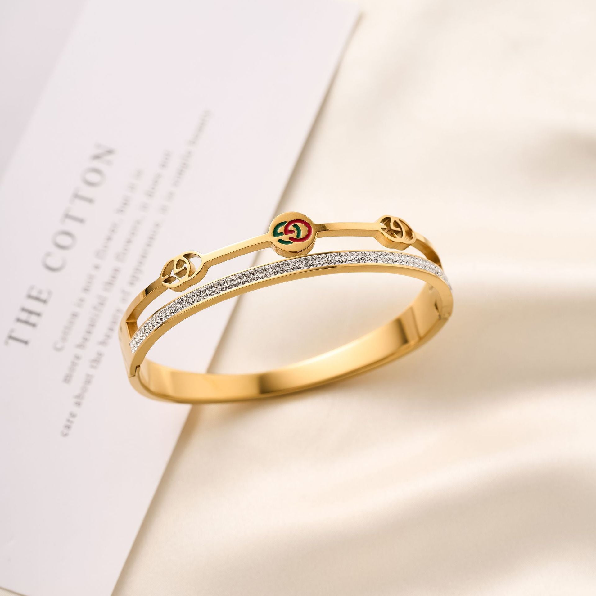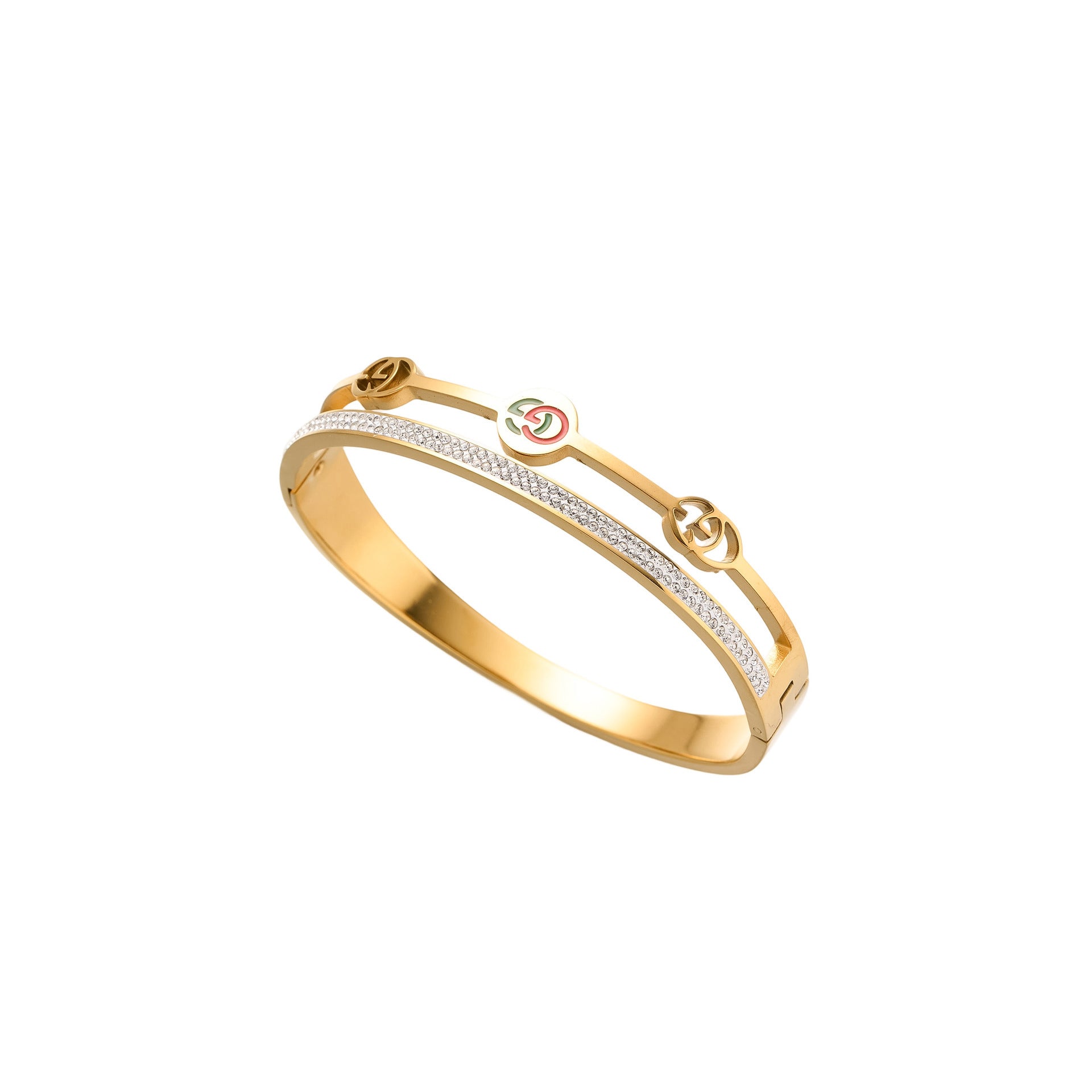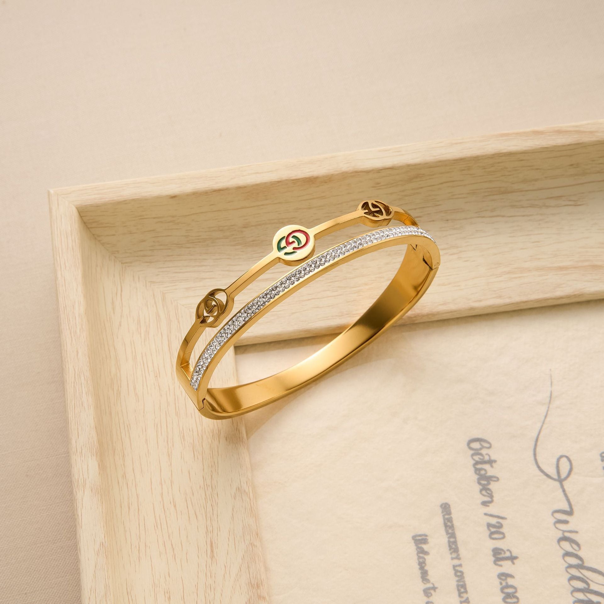 SKU:YY-0902-Gold Double Row Diamond Alphabet Bracelet