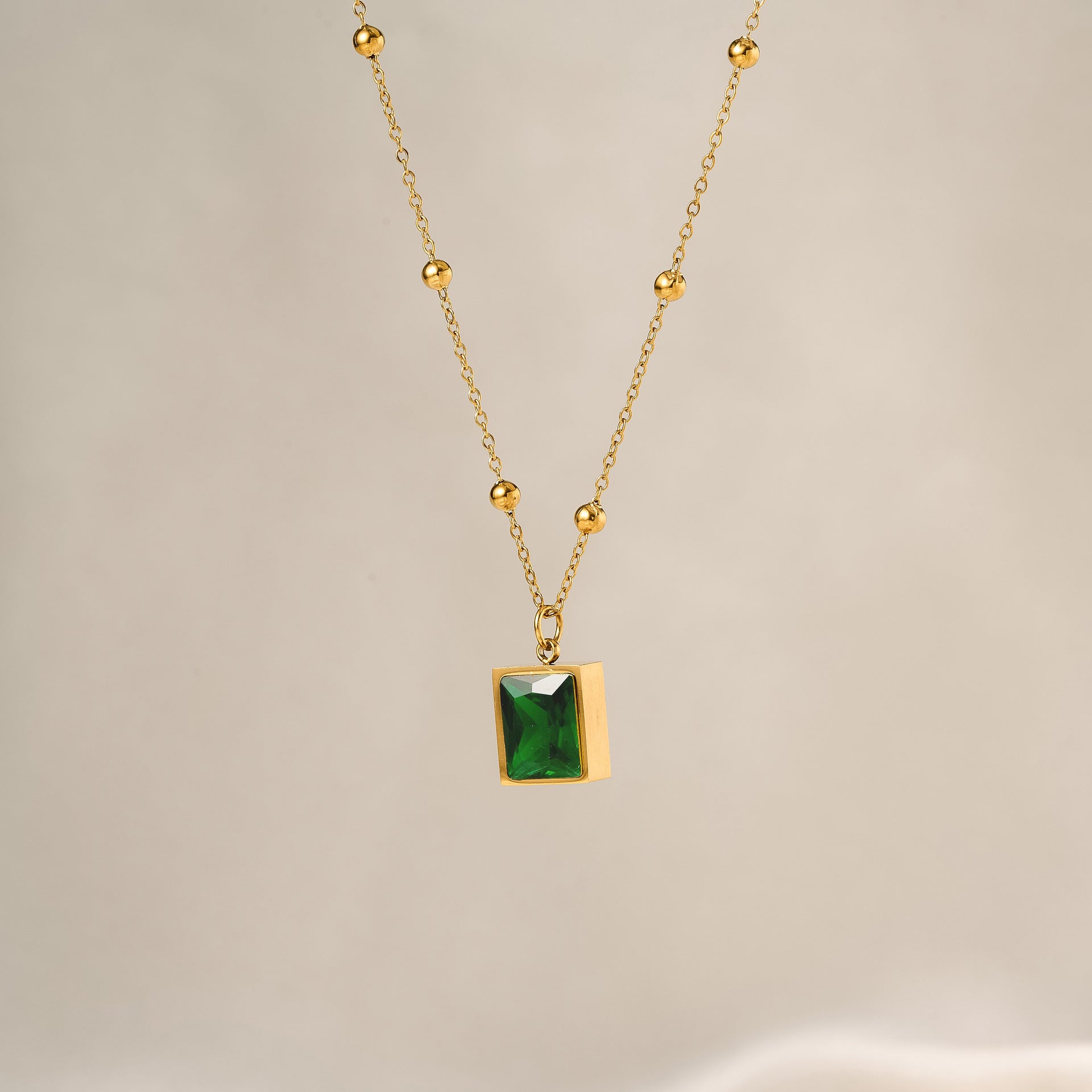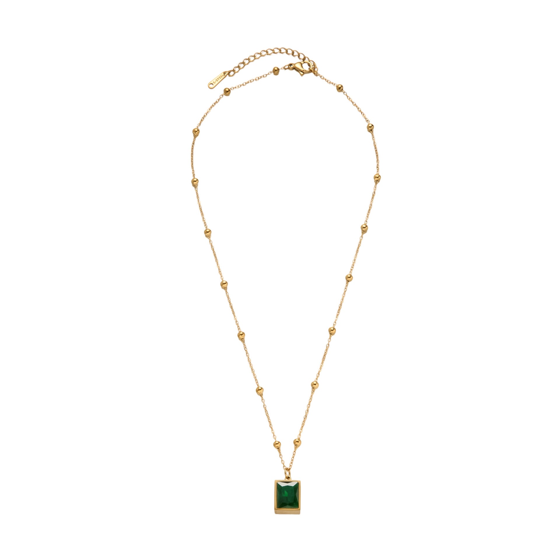 SKU:YY-0910-Gold Rice Bead Chain Green Diamond Necklace