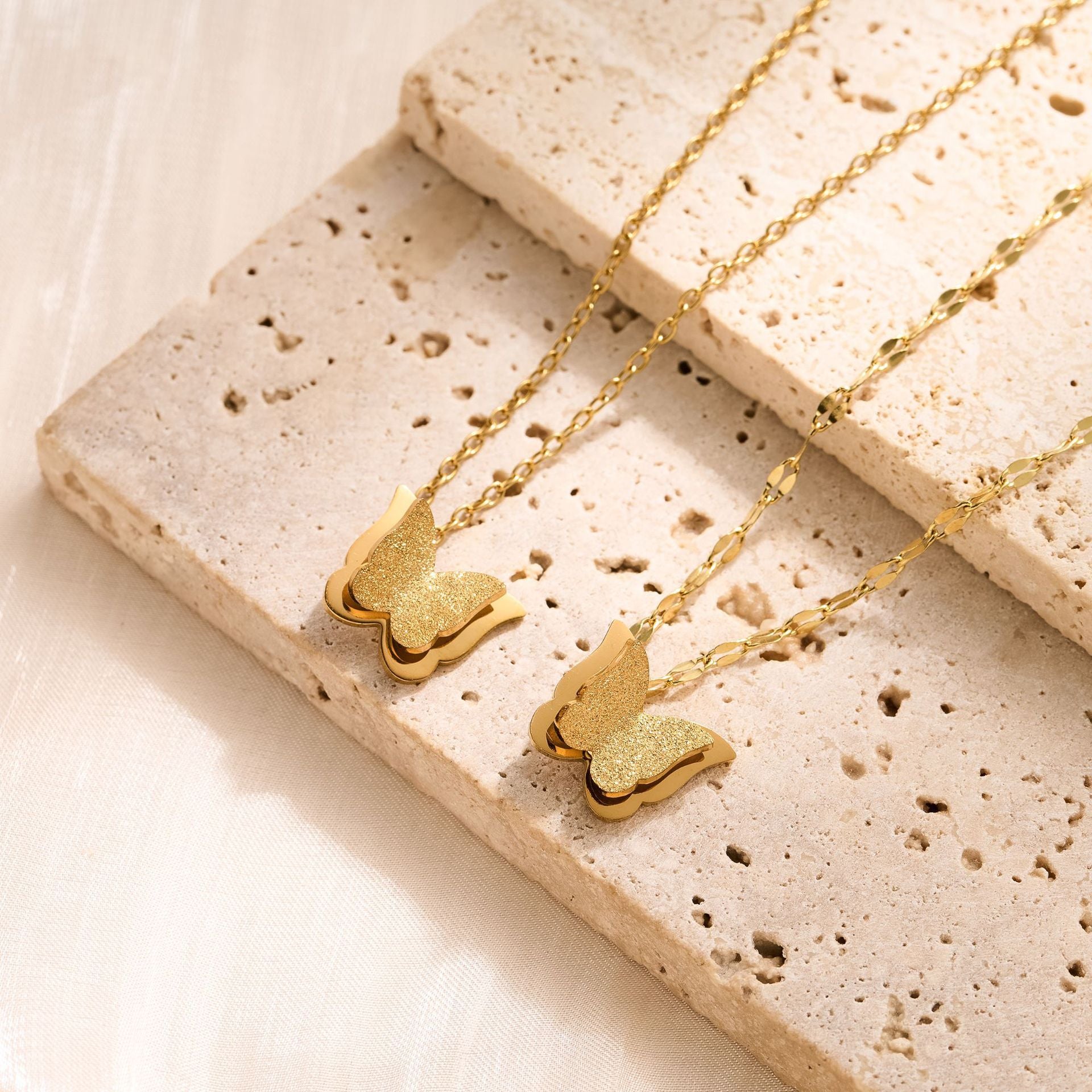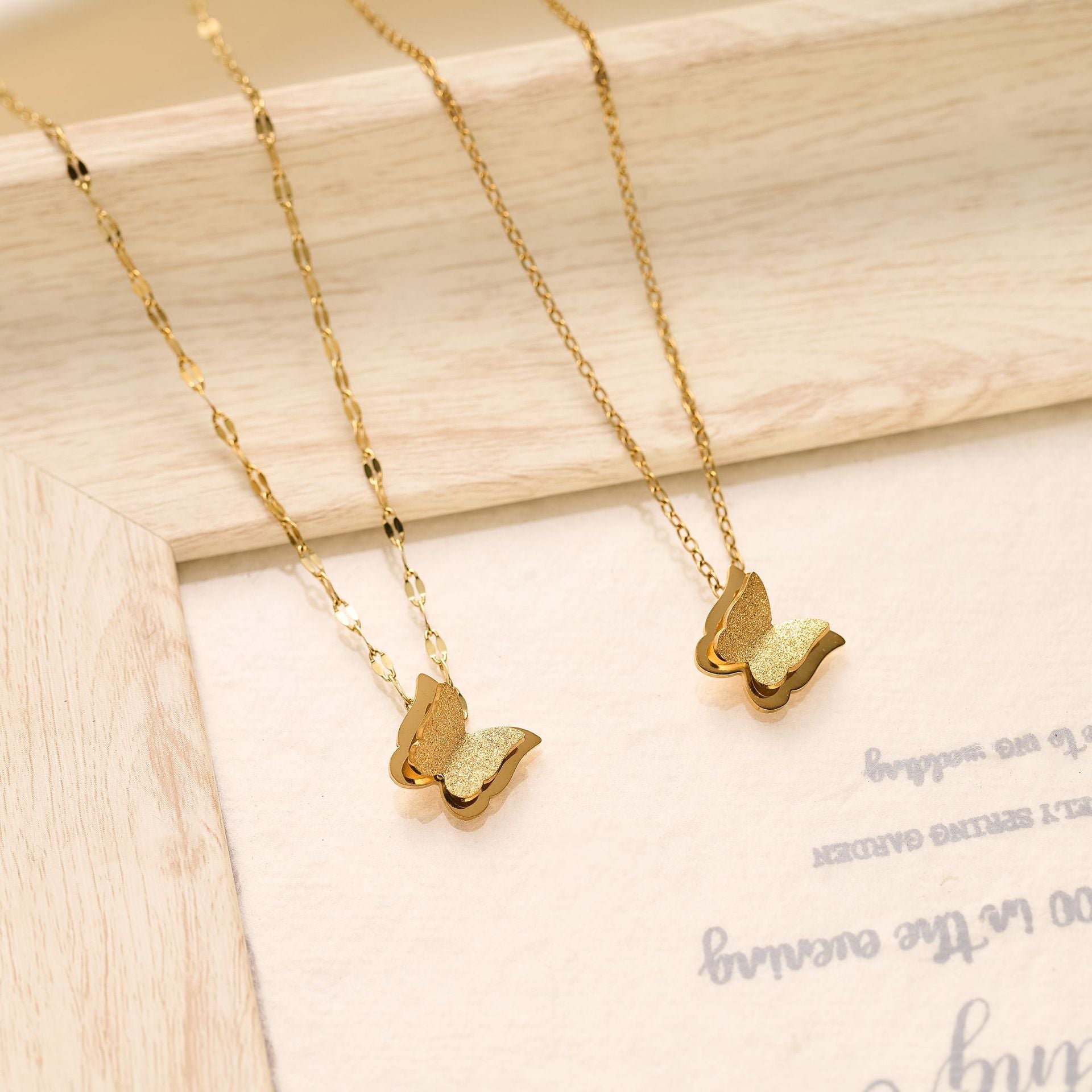 SKU:YY-0904-Golden Lip Chain Butterfly Necklace