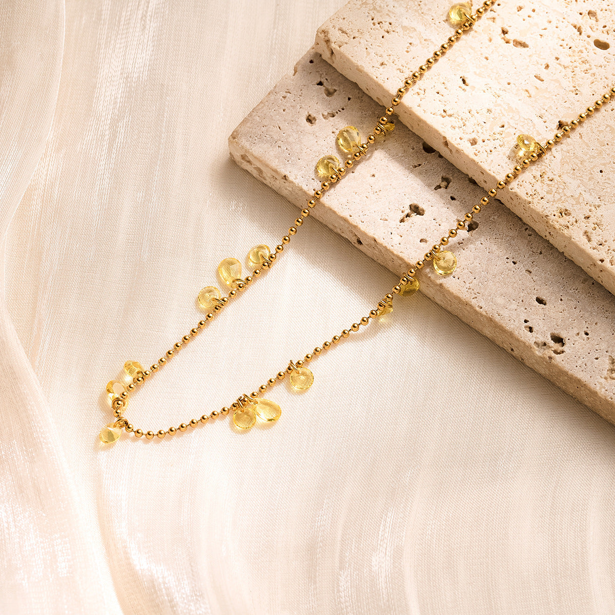 SKU:YY-0892-Golden rice bead small water drop necklace