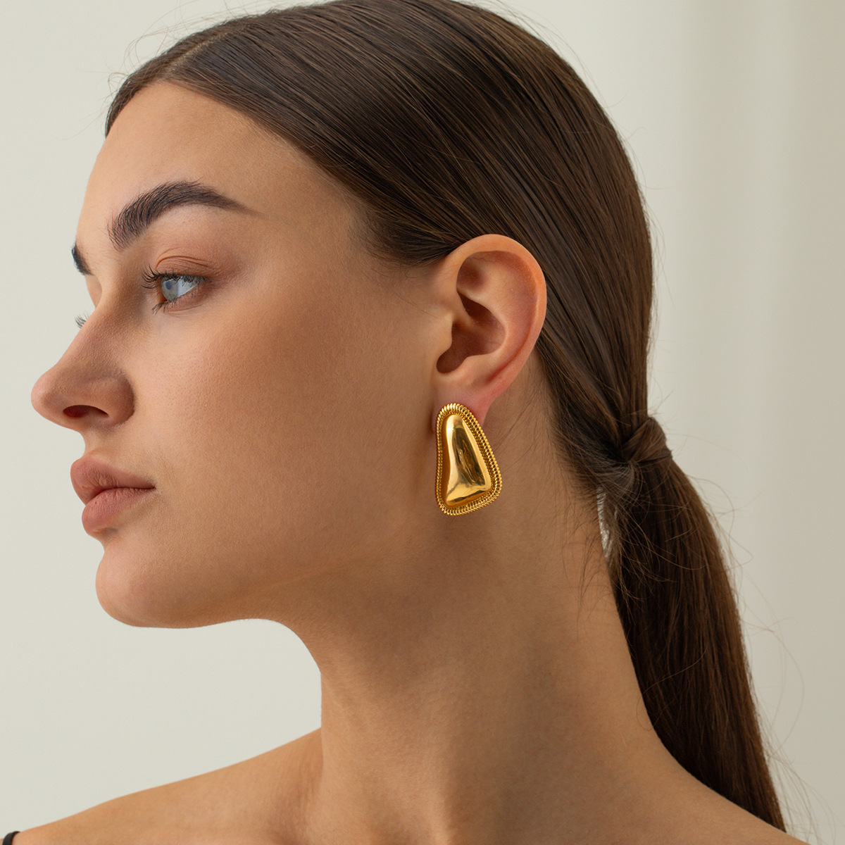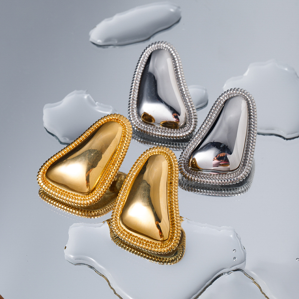 Triangle bread pattern hoop earrings