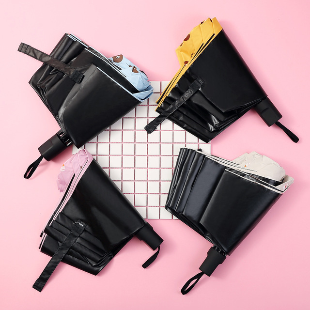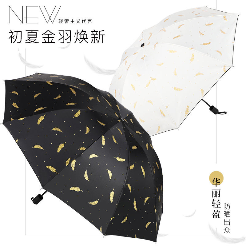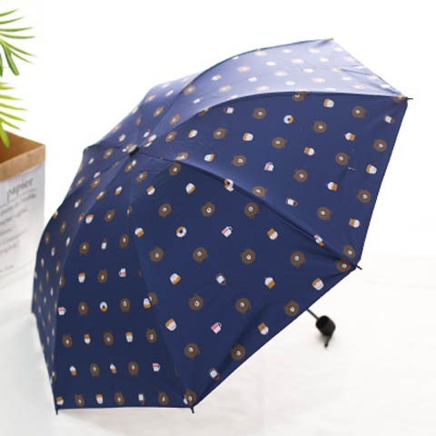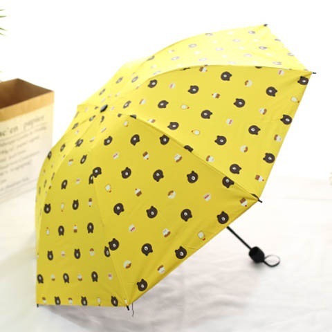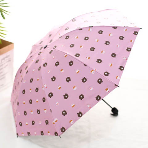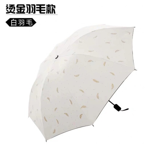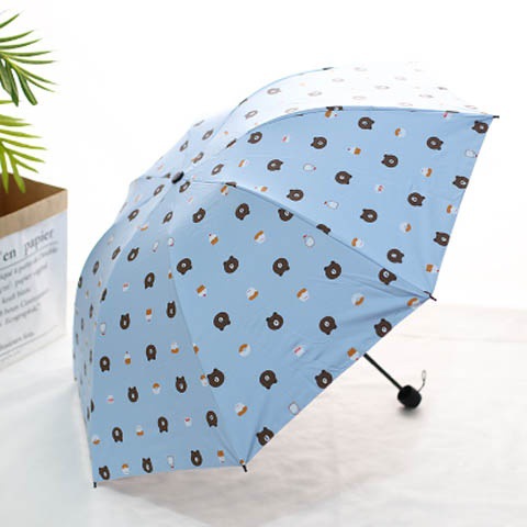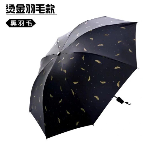 Black Coating Bear Plaid Daisy Feather Folding Umbrella