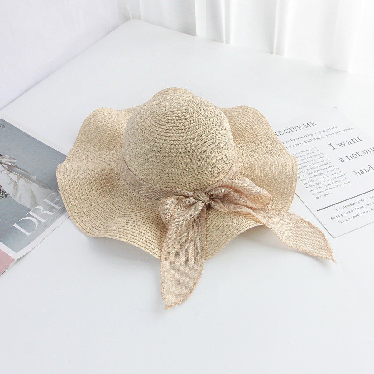Wavy Brim Straw Hat Spring/Summer UV Protection Foldable