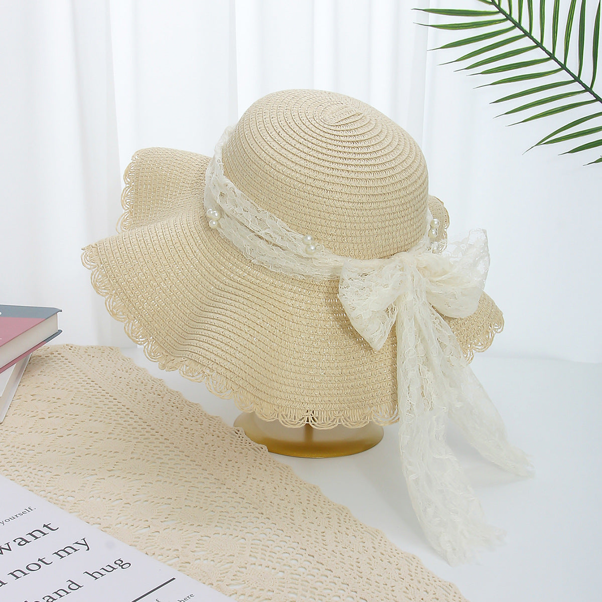 Wavy-Edge Floral Straw Hat