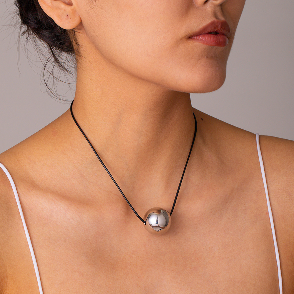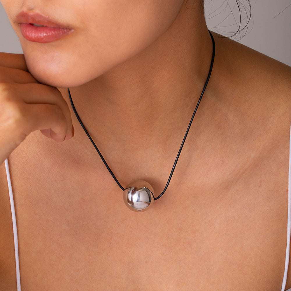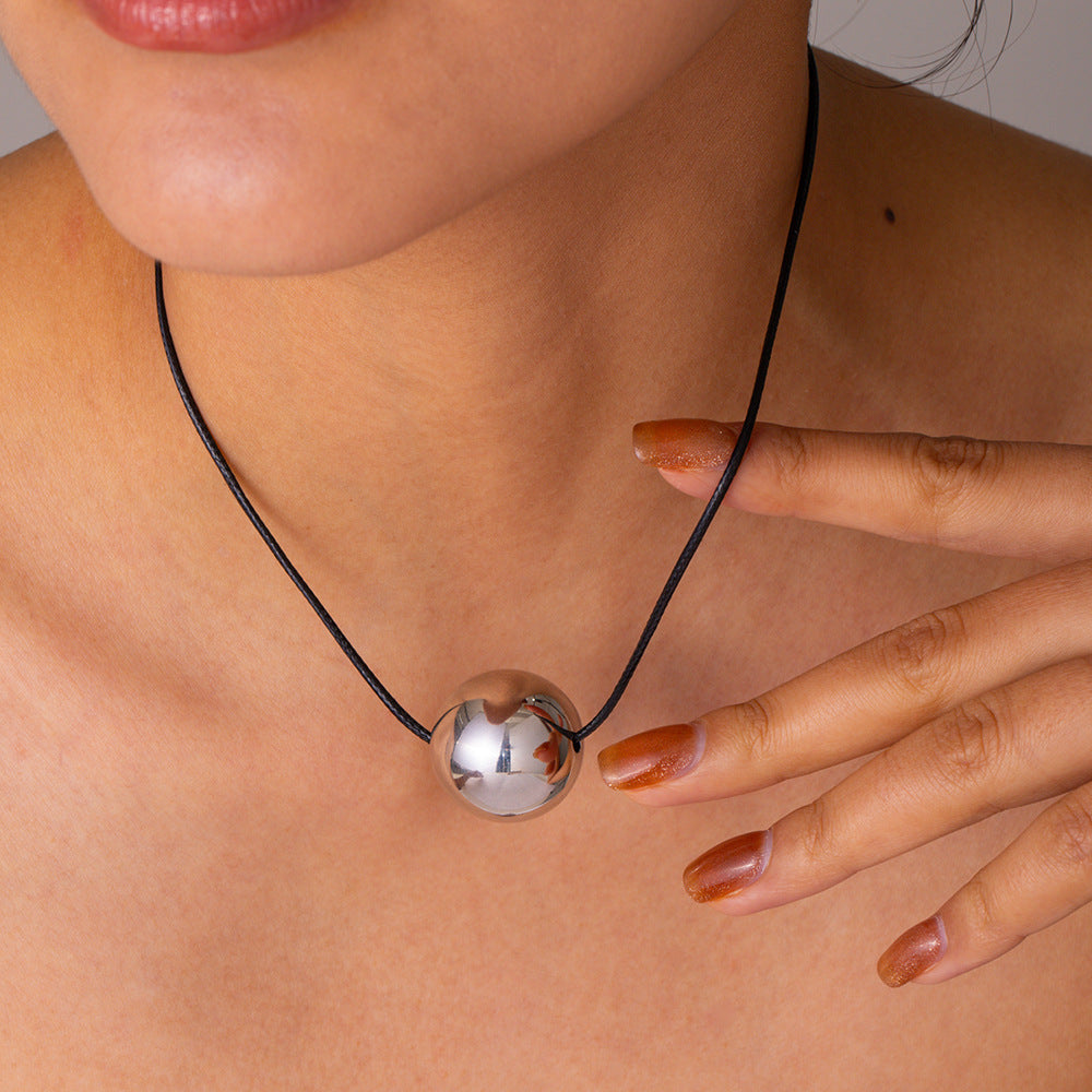 Wax rope pull ball pendant necklace