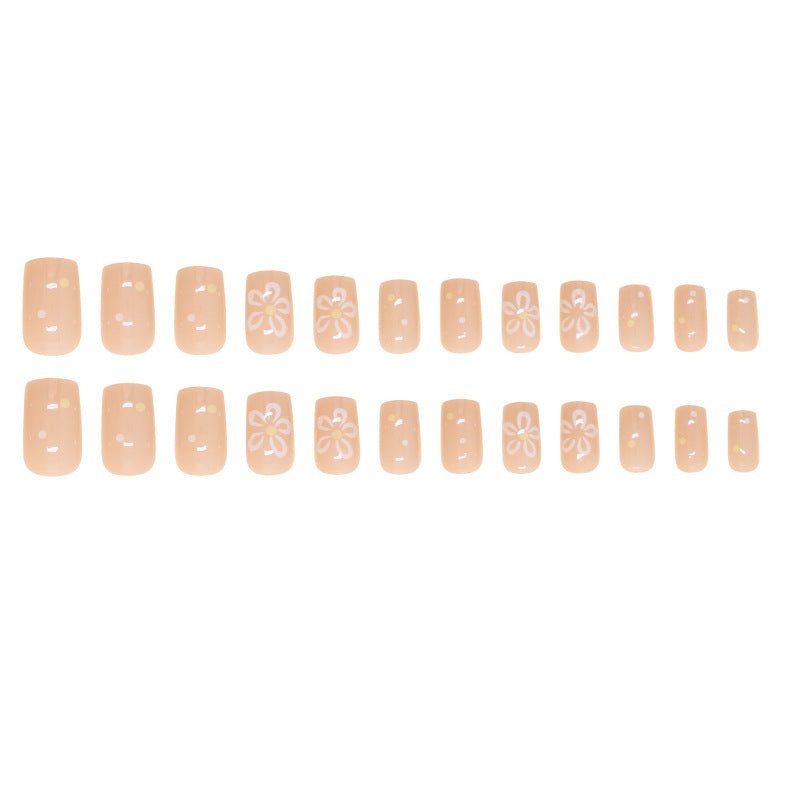 Wearable Flower Short Square Nail Stickers 24 Pieces