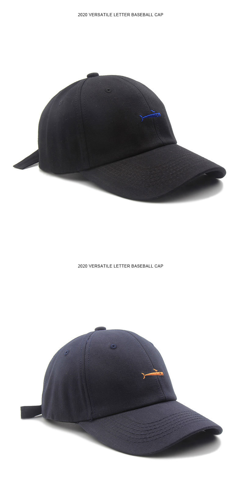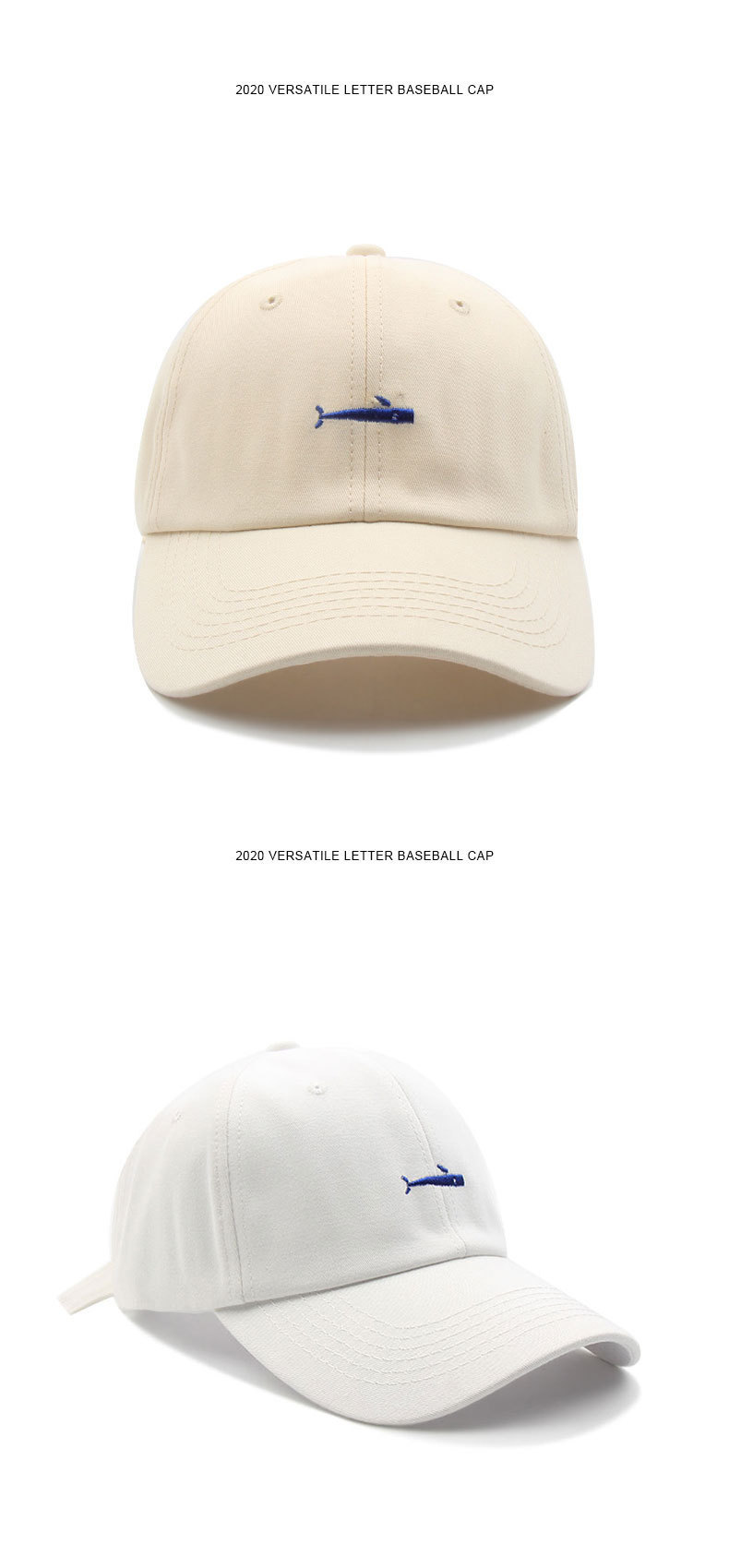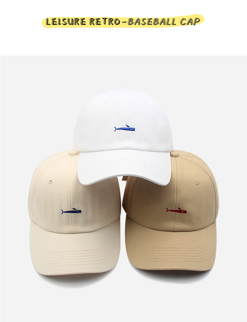 Whale Embroidered Cotton Baseball Cap