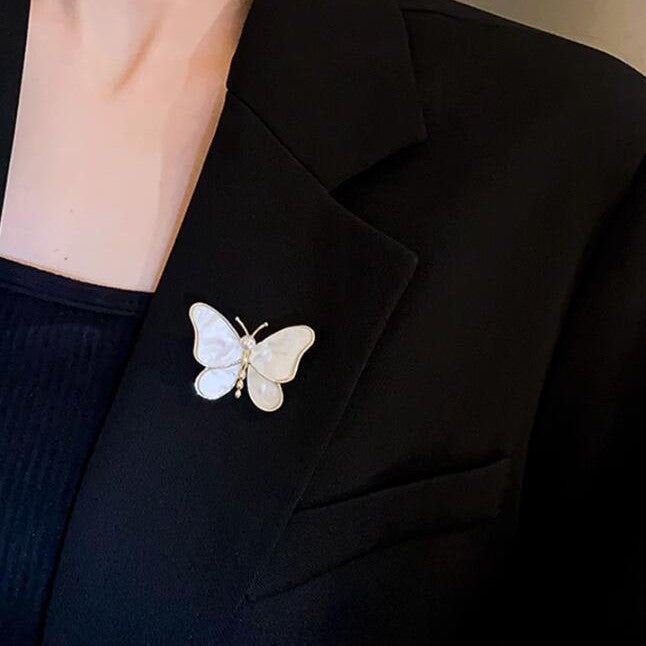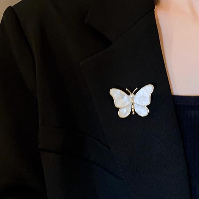 White Pearl Butterfly Brooch