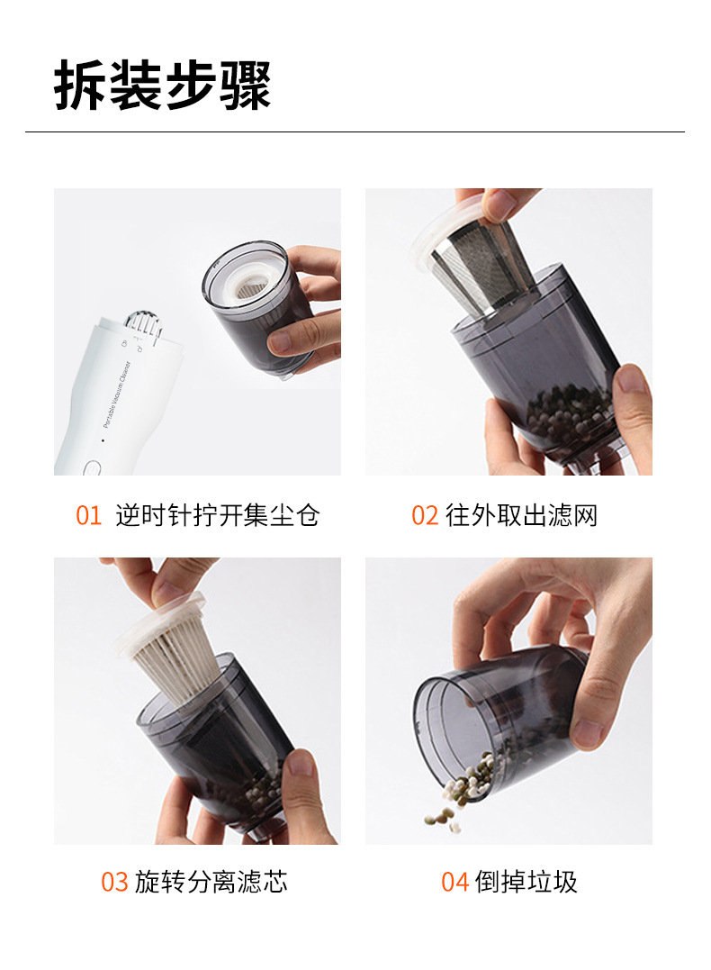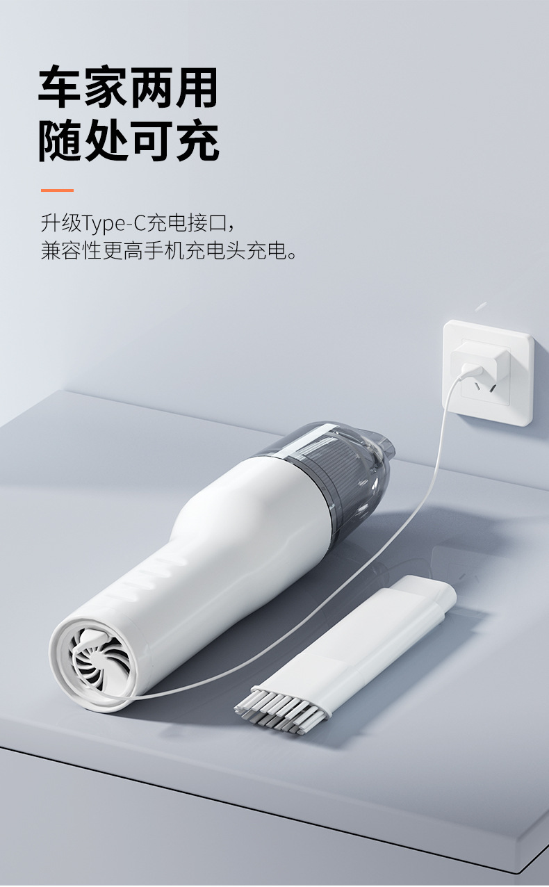Small and easy to carry, one-click press to start, [top vacuuming, tail blowing] Two modes work at the same time