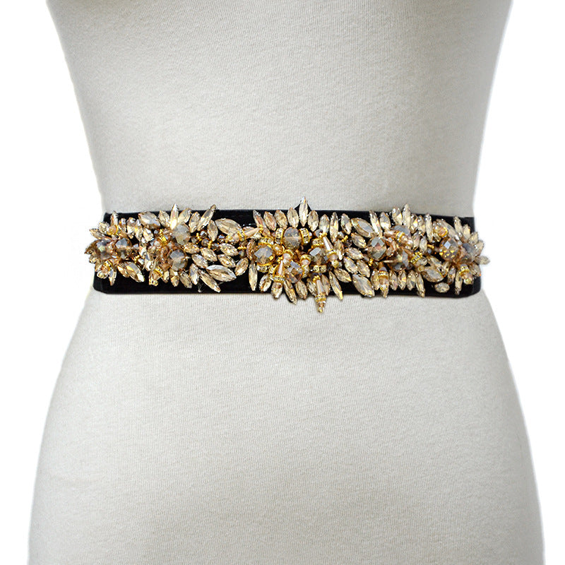 fashion Rhinestone inlaid rice bead belt