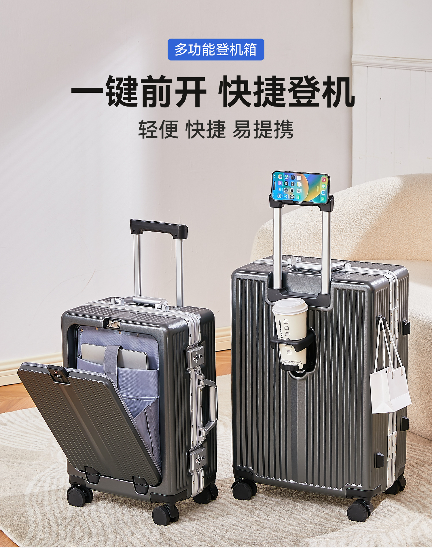 Aluminum frame suitcase 24 inch anti-drop