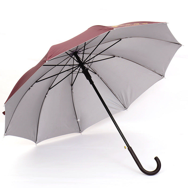 10 Rib Silver Coated Umbrella Long Handle Advertising Umbrella