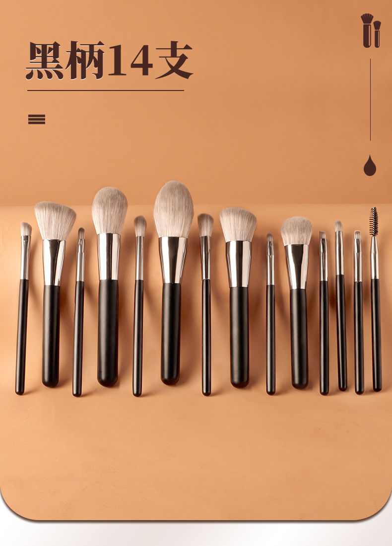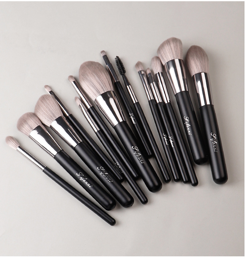 14-Piece Black Handle Makeup Brush Set