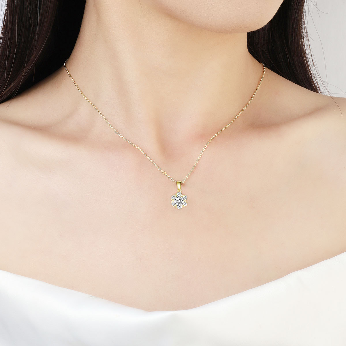 14K gold snowflake necklace copper inlaid with 5A zircon