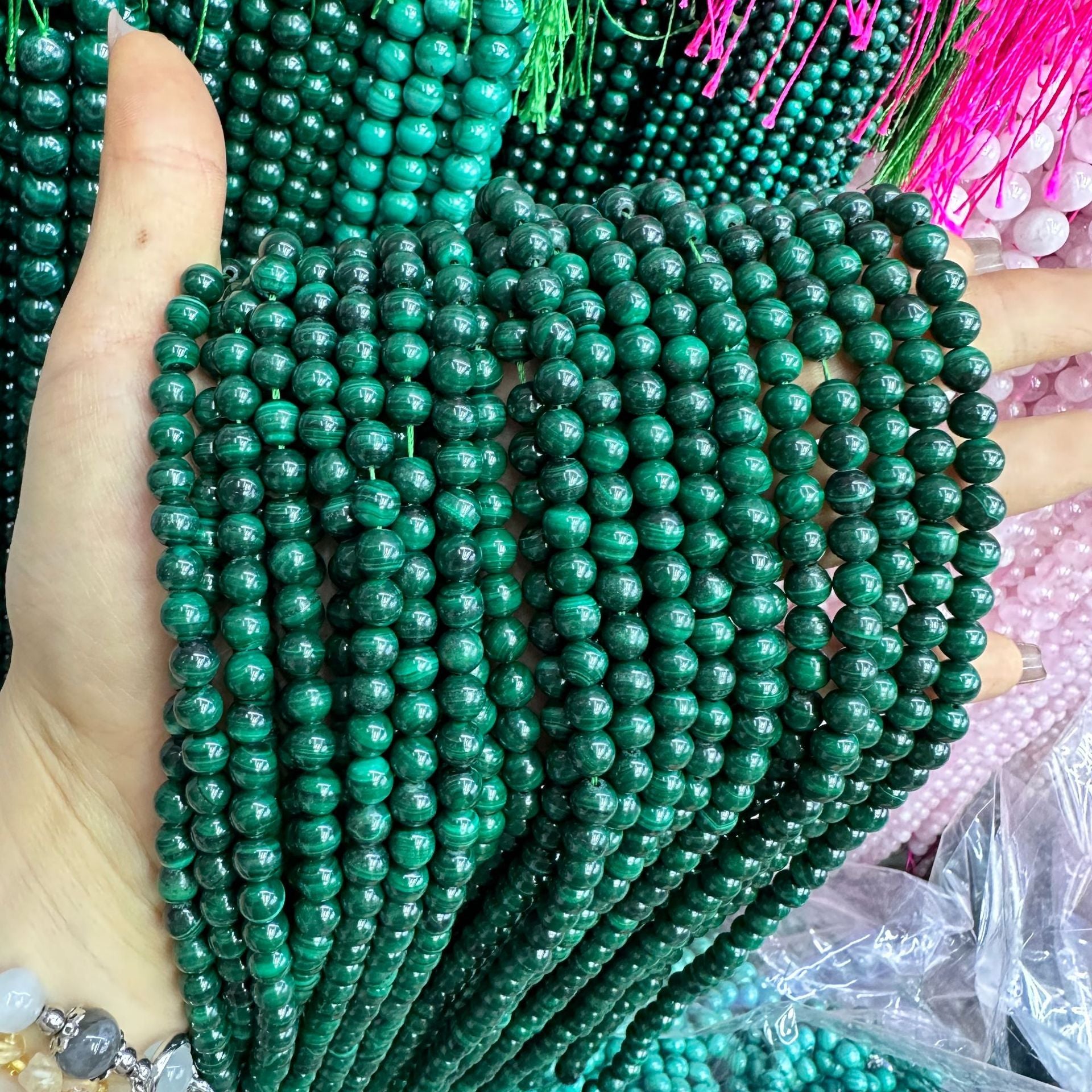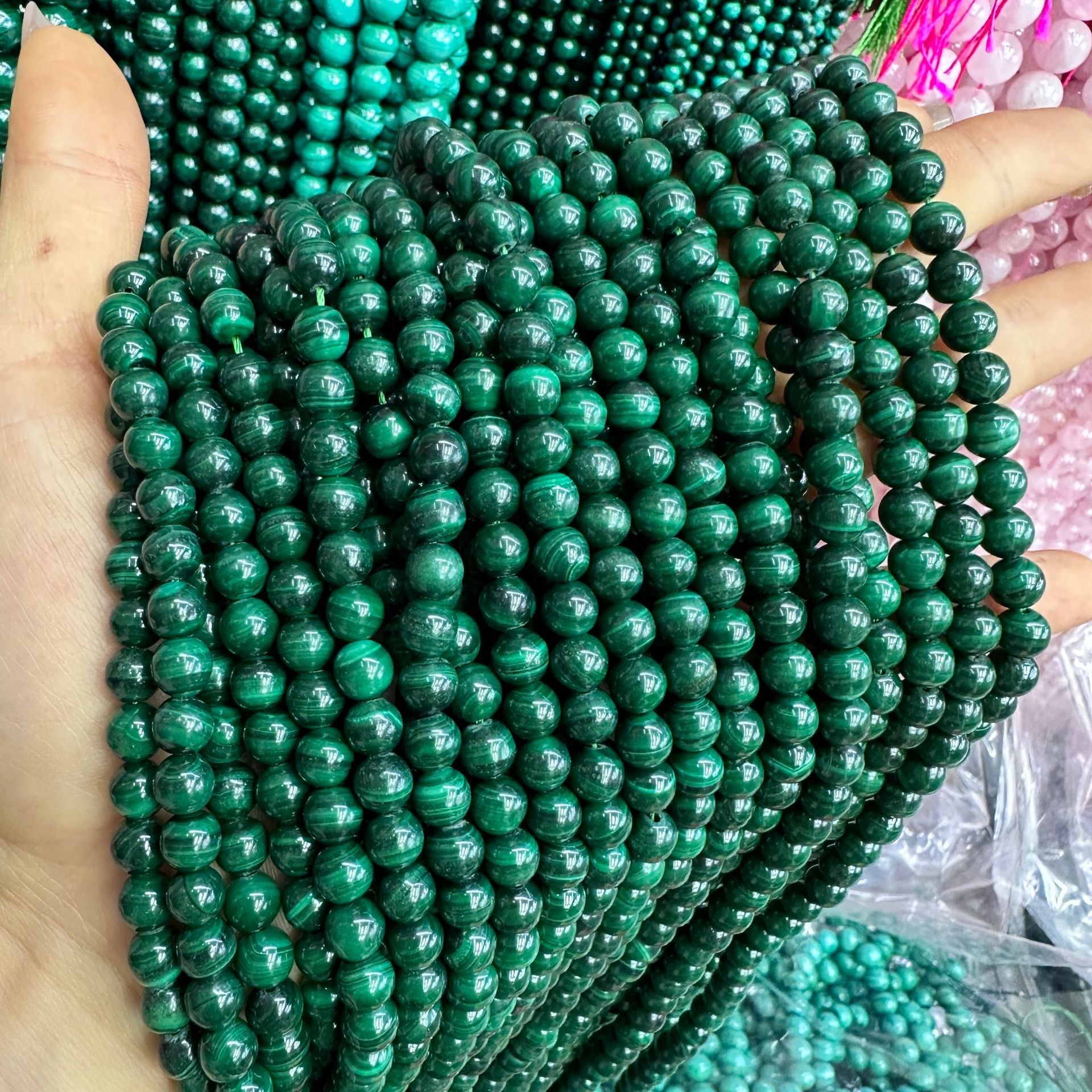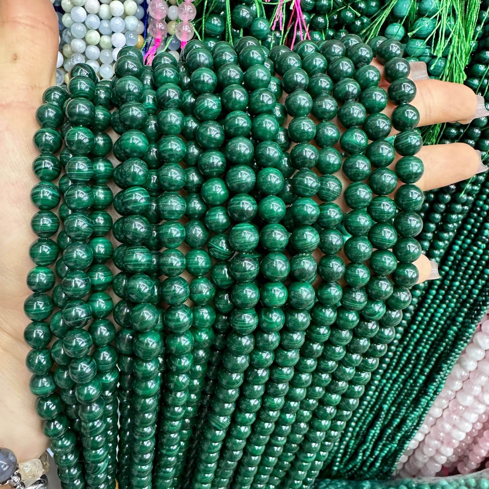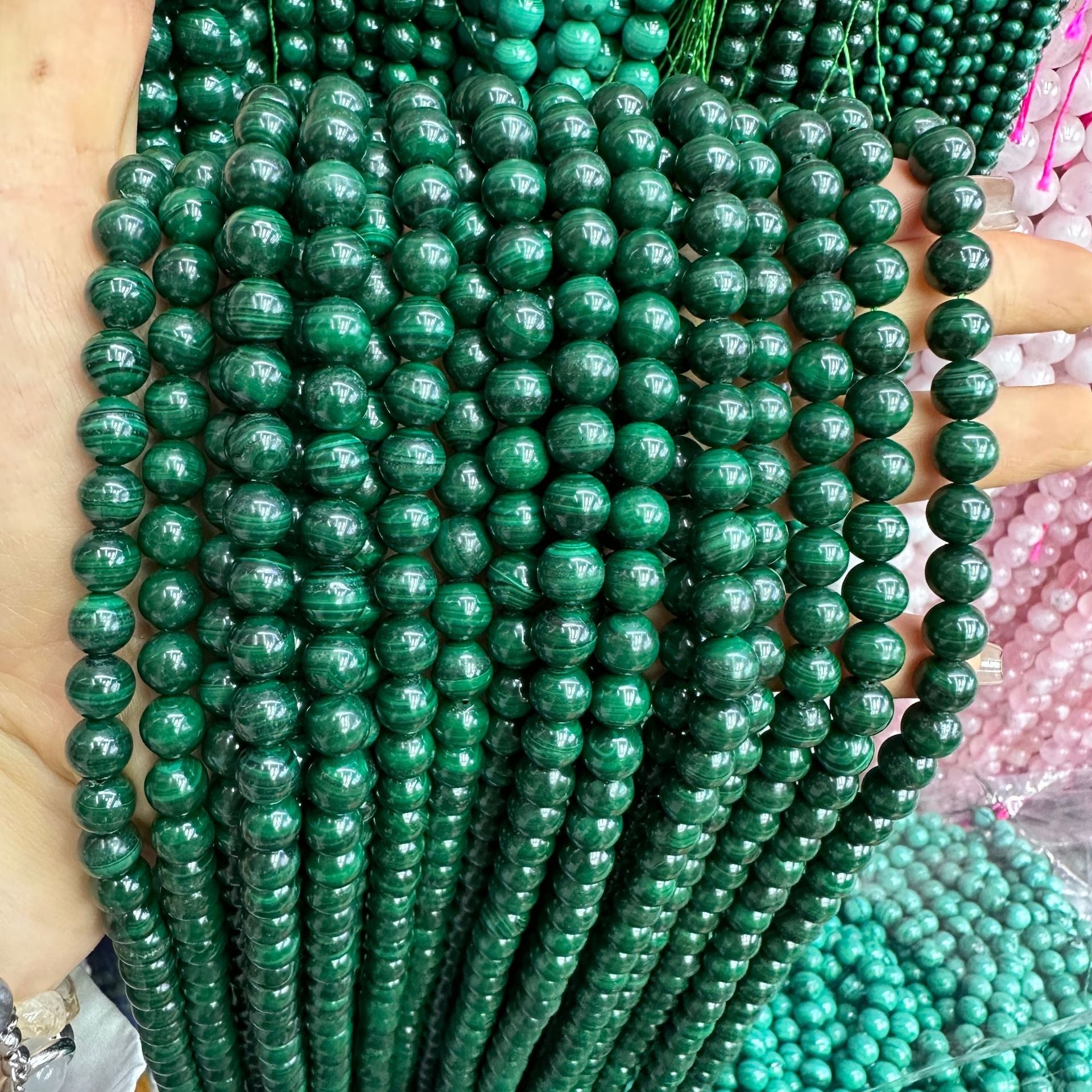 Contas redondas de malaquita natural de 4-12 mm