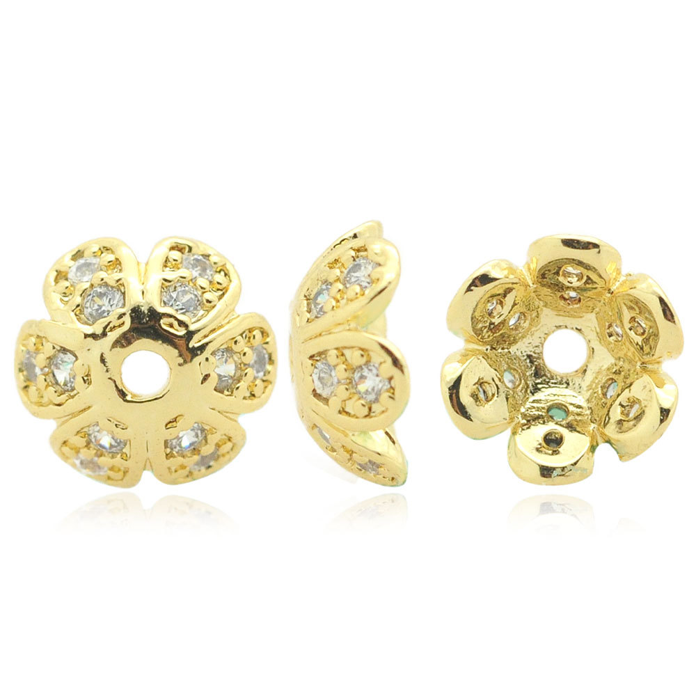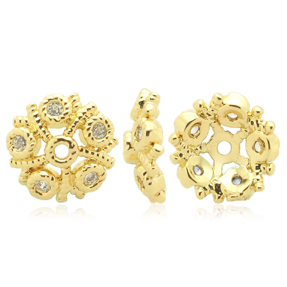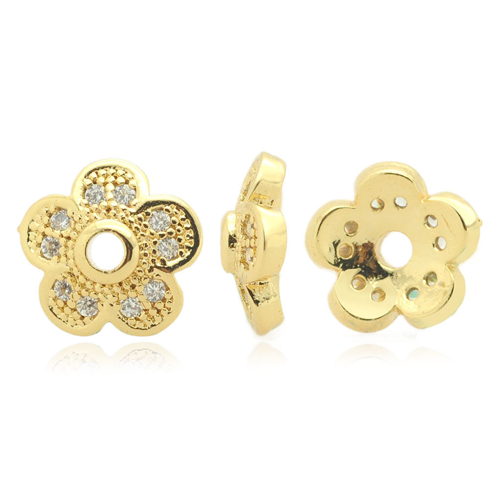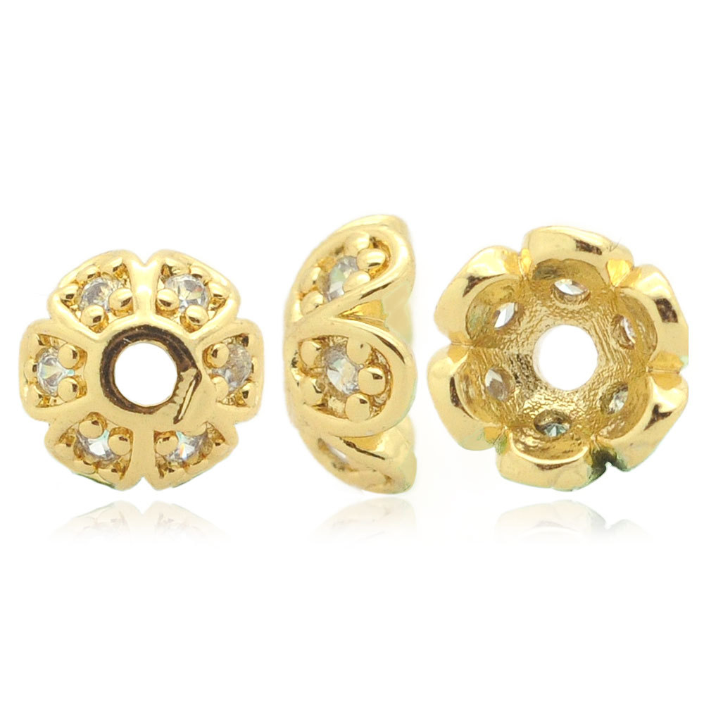 5 pcs/pack round copper zircon beaded flower spacer beads