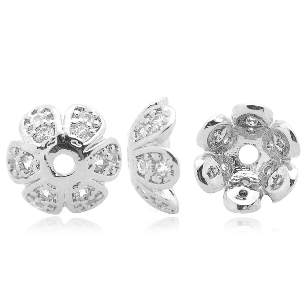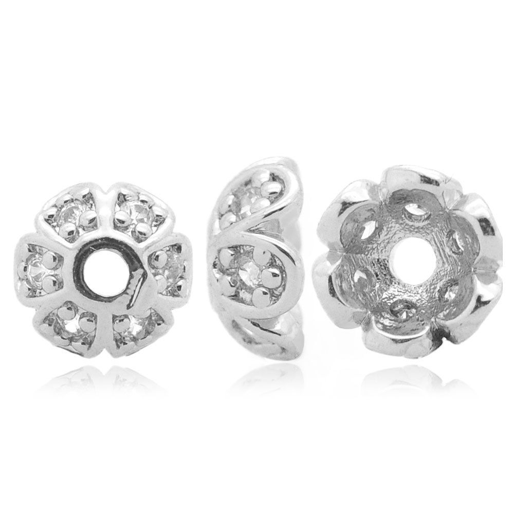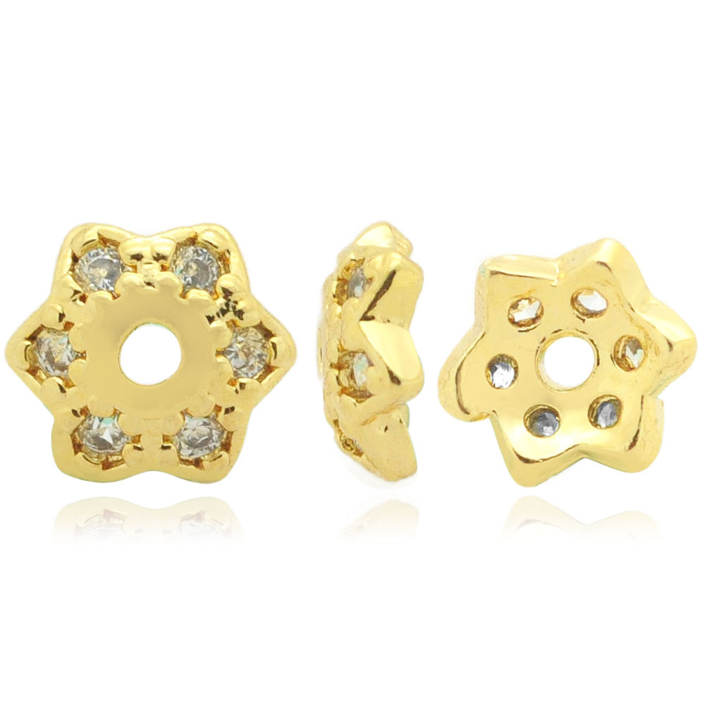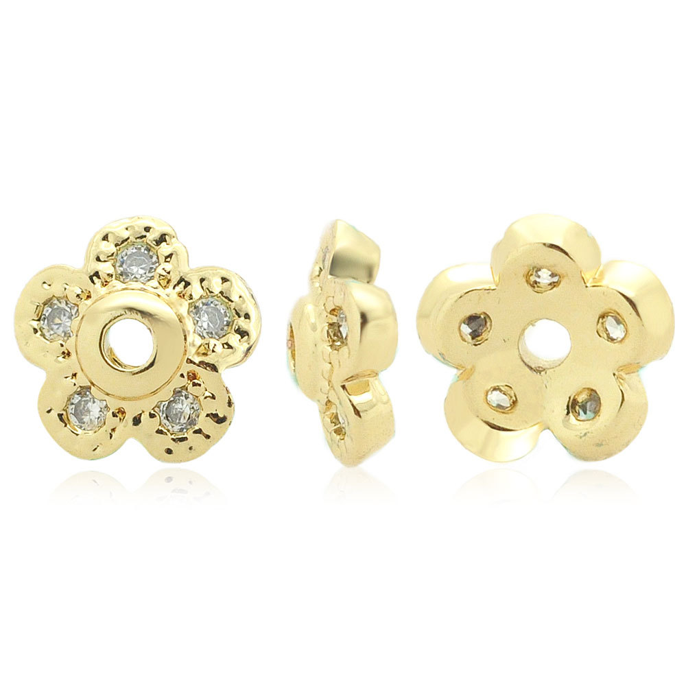 5 pcs/pack round copper zircon beaded flower spacer beads