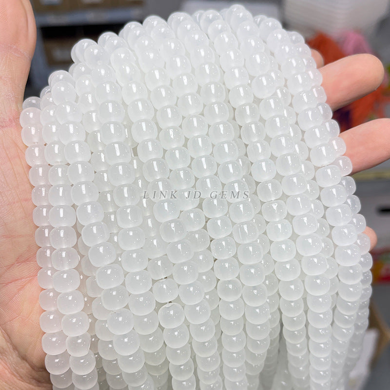 7 * 8Mm imitation white jade glass old bead barrel beads