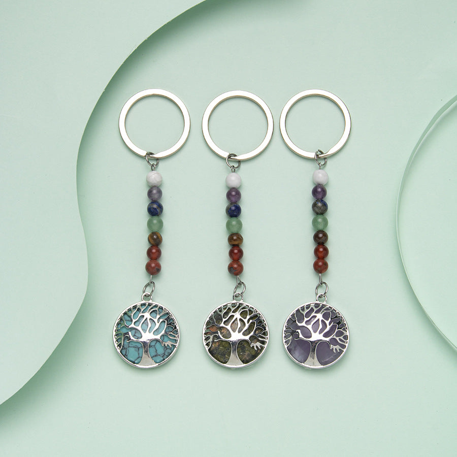 Chaveiro de aço inoxidável com pingente de árvore da vida com 7 cores de veias
