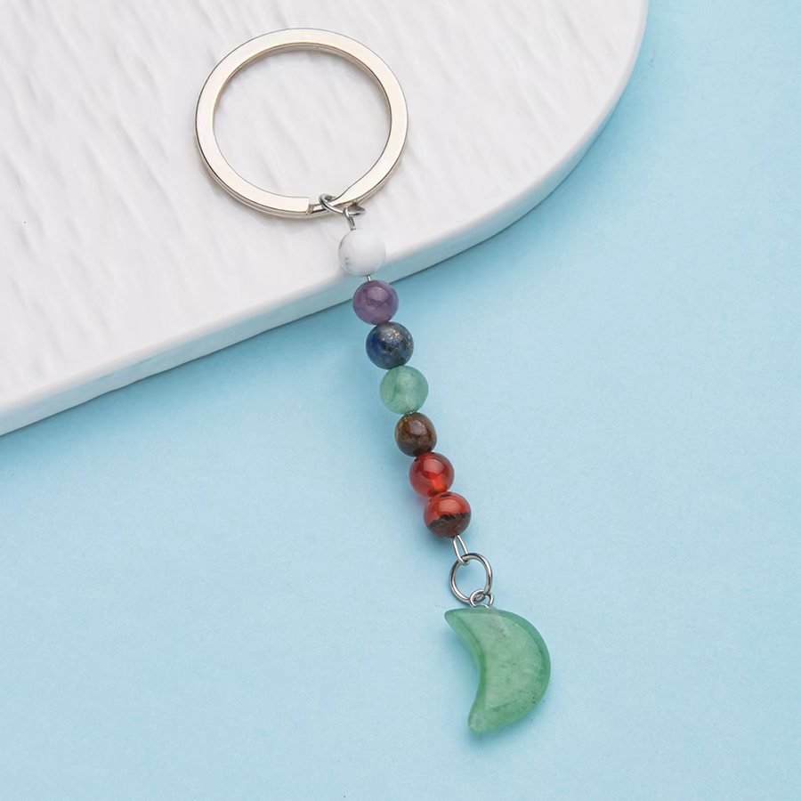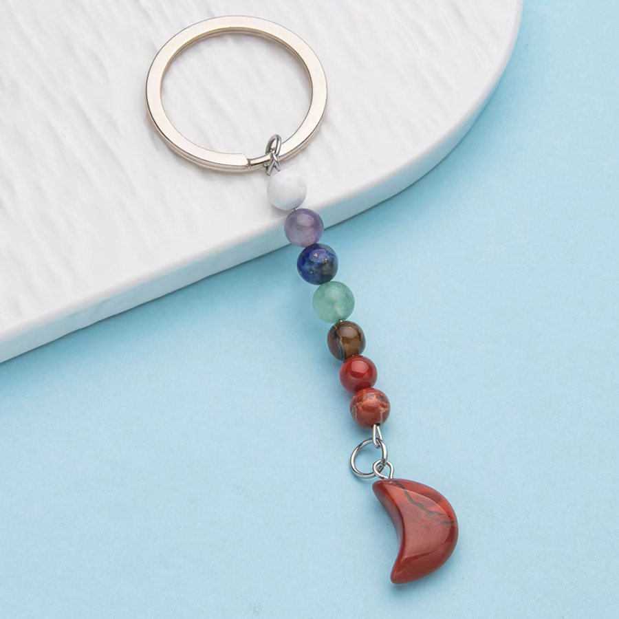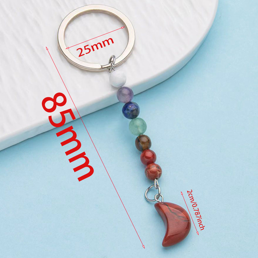 Chaveiro de aço inoxidável com pingente de lua de ágata de cristal natural colorido