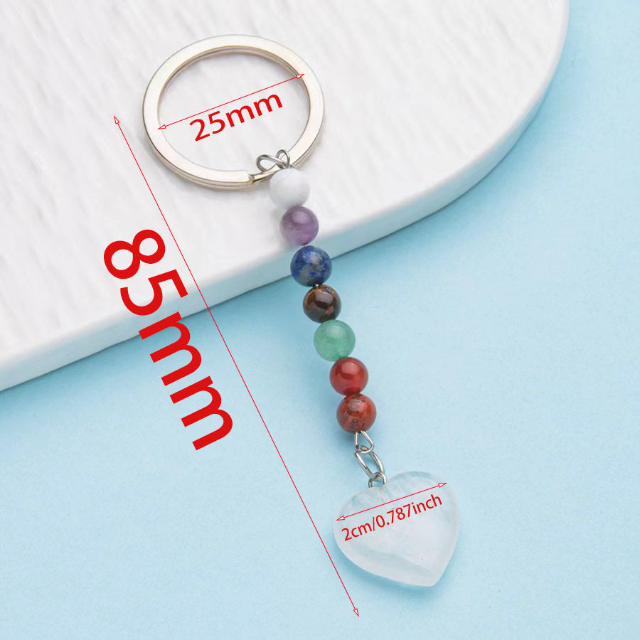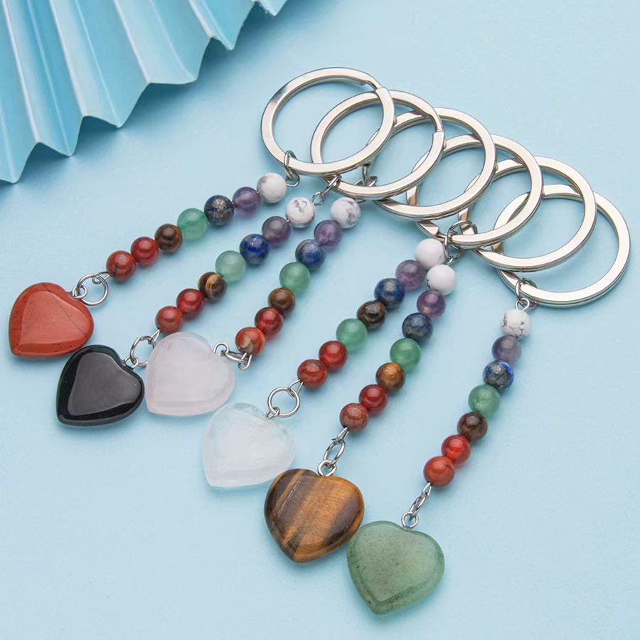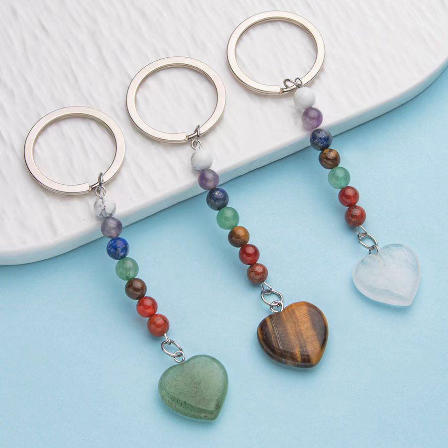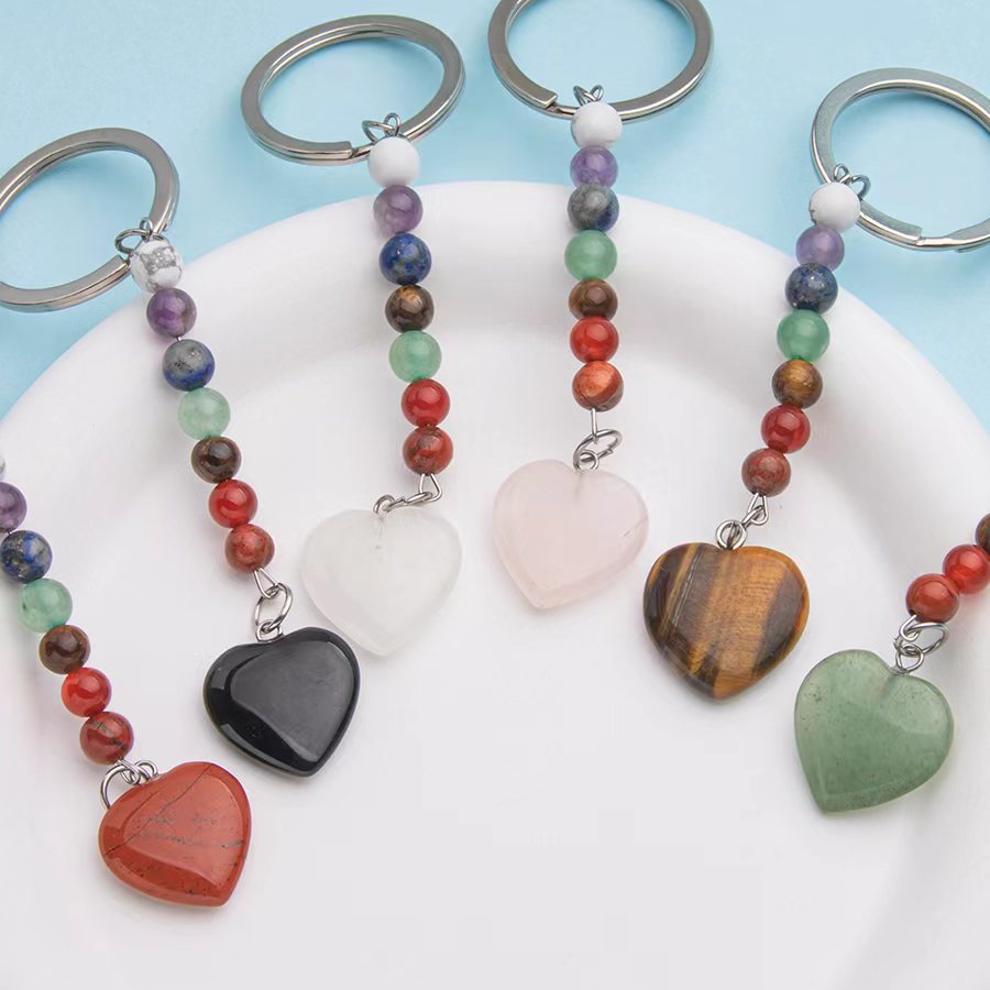 Pingente de chaveiro de aço inoxidável com pingente de amor de cristal natural colorido